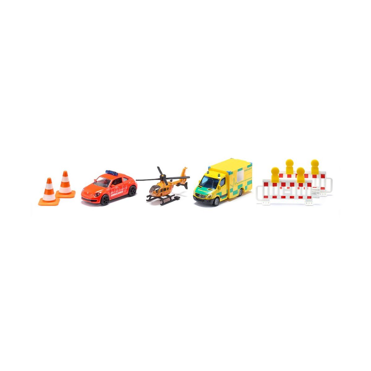 Detailliertes Spielzeug-Set mit Fahrzeugen und Helikopter zum Spielen und Sammeln, Für kleine und große Rettungsdienst-Fans - VW Beetle-Notarztwagen mit Blaulichtbalken und Türen zum Öffnen, Helikopter mit klappbaren Rotorblättern und drehbarem Propeller, Detailgetreuer Mercedes-Sprinter, Inkl. Warnbaken und Pylonen - Ideal als Geschenk für Kinder zu bspw. Geburtstagen oder für zwischendurch geeignet, aber auch als Dekoration für Erwachsenen-Geburtstage oder Hochzeitsgeschenke - Perfekt zum platzsparenden Mitnehmen, Langanhaltender Spielspaß durch unzählige Kombinationsmöglichkeiten innerhalb der siku-Spielwelt - Lieferumfang: 1x siku 6332 Geschenkset Rettung, Inkl. 2 Pylonen und 2 Warnbaken, Material: Metall/Kunststoff, Gewicht: 0,1318 kg, Farbe: Multicolor, Serie: SIKU GESCHENKSET.