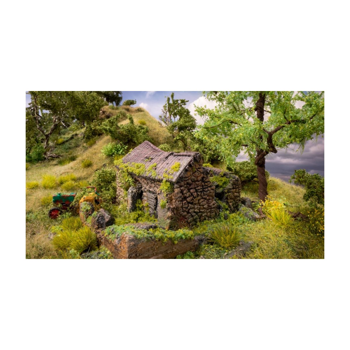 Die Natur holt es sich zurück! Fertigmodell aus NOCH Hartschaum, handkoloriert und veredelt! Alte Scheunen, Häuser, Hütten oder Ställe, die verfallen und Wind und Wetter ausgesetzt sind, werden schnell von der Natur wieder eingenommen. Pflanzen ranken an den eingefallenen Mauern hinauf, Baumwurzeln sprengen die Reste des Fundaments und in den Ritzen sprießt Unkraut und Moos. Auch der zurückgelassene alte Traktor hat es nicht leicht und verschwindet Stück für Stück im Grün ... Die Natur fasziniert uns immer wieder. Vor allem, wenn sie sich Orte zurückholt, die wir Menschen für uns beansprucht haben. Sogenannte Lost Places sind längst zur Attraktion geworden. An diesen Orten bleiben wir mit offenem Mund staunend zurück, denn uns wird nur allzu bewusst, wie kurzzeitig unser Dasein auf dem Planeten ist. Dieses Kräftemessen zwischen Mensch und Natur fasziniert uns und tief in uns drinnen wissen wir, dass die Natur am Ende immer gewinnt und auch uns Menschen überdauern wird. Das NOCH Hartschaum-Modell Gebäuderuine wird liebevoll handkoloriert, mit feinen Details ausgeschmückt und anschließend mit einem superrealistischen, handgefertigten Baum veredelt. Die so gestalteten Modelle sind Highlights für jede Modell-Landschaft und ziehen alle Blicke auf sich. Hinweis: Dieses Modell erscheint im Rahmen der NOCH Saison-Promotion exklusiv bei teilnehmenden Fachhändlern. Die Adressen der NOCH Händler, die Ihnen dieses Highlight anbieten finden Sie hier..