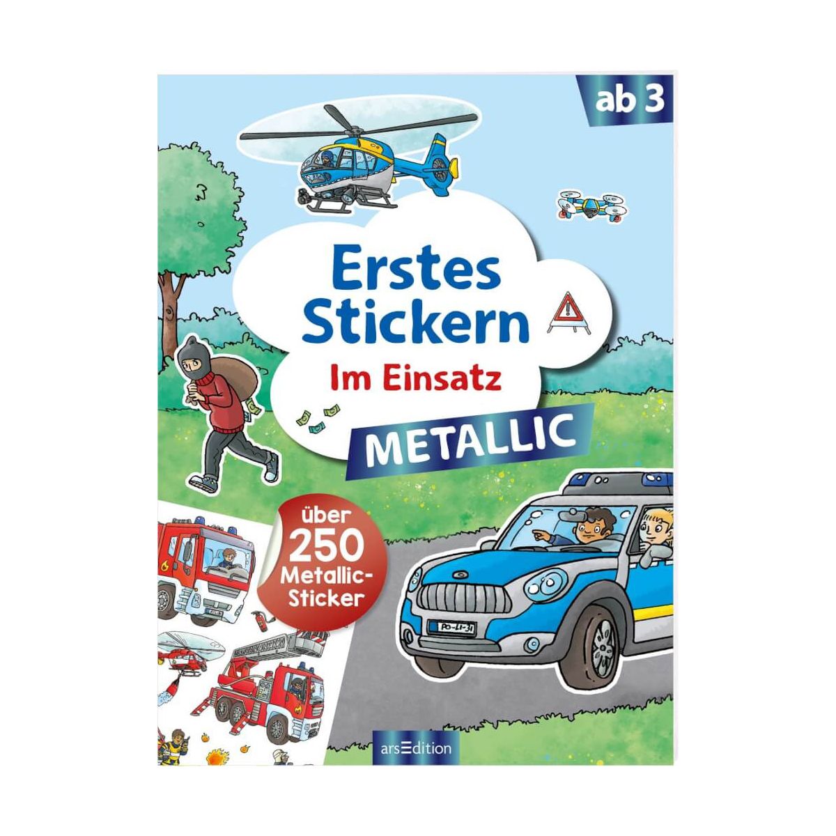 Für alle Fans von Einsatzfahrzeugen Ob Banküberfall, Hochwasser oder Steinlawine: Hier warten spannende Szenen auf deine Hilfe! Stickere die passenden Einsatzfahrzeuge, Polizei, Feuerwehr und viele mehr. Über 250 Metallic-Sticker garantieren Riesen-Klebespaß für kleine Hände ab 3 Jahren. - Metallic-Effekt: Die in zwei Farben glänzenden Sticker sind ein ganz besonderer Hingucker - Tolle Bilder: Die 14 Szenen sind bunt illustriert und laden zum Stickern ein - Viele Sticker: In das Stickeralbum integriert sind Stickerbögen mit über 250 Aufklebern. Die Bögen sind perforiert zum leichten Heraustrennen - Spannende Motive: Hier finden sich jede Menge Szenen zum Bestickern - Ideal als Geschenk oder Mitbringsel: Über dieses Buch freuen sich alle fahrzeugbegeisterten Kinder ab 3 Jahren Stickerspaß mit dem besonderen Extra Das großformatige Stickeralbum bietet jede Menge Raum, der Fantasie freien Lauf zu lassen und eigene, schillernde Szenen rund um das Thema Einsatzfahrzeuge zu erschaffen..