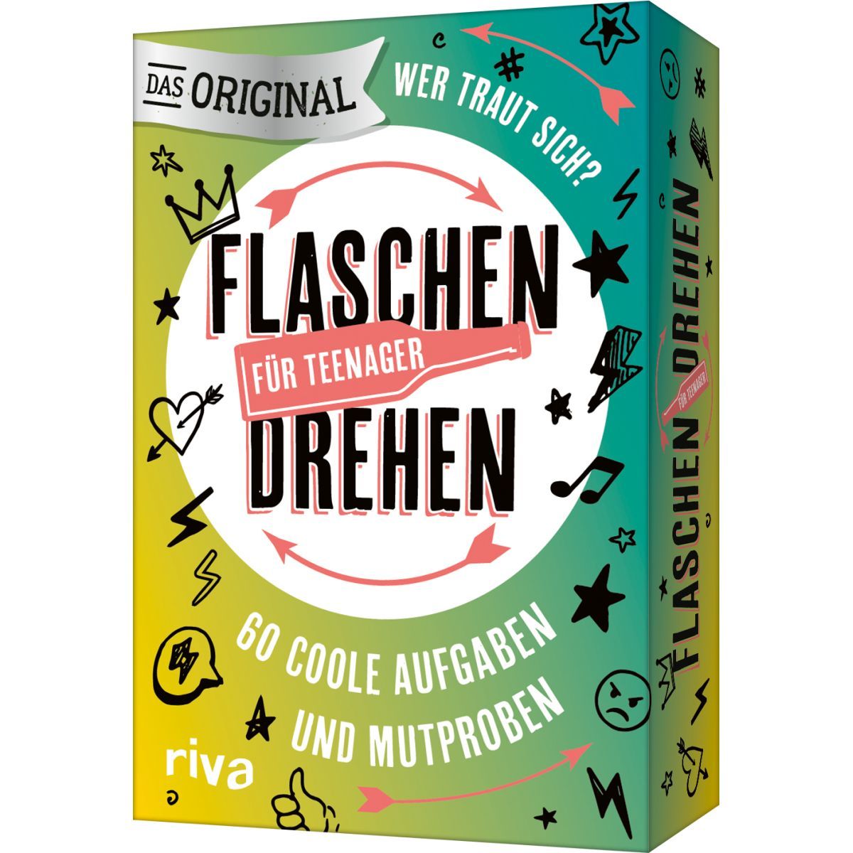 »Flaschendrehen« ist zurück – und zwar cooler als je zuvor, speziell für Teenager! Über 60 abgefahrene, lustige und freche Aufgaben sorgen dafür, dass keine Party, Klassenfahrt oder Übernachtung mehr langweilig wird. Ob peinliche Geständnisse, verrückte Mutproben oder spannende Challenges – hier kommt garantiert Stimmung auf. Jede Karte bringt neue Überraschungen und sorgt für jede Menge Lacher, Mut und beste Unterhaltung in der Runde. Ideal für alle zwischen 12 und 17 Jahren, die gemeinsam Spaß haben und ihre Freundschaften auf die Probe stellen wollen. Dieses Kartenset hebt Gruppenspiele auf ein ganz neues Level!