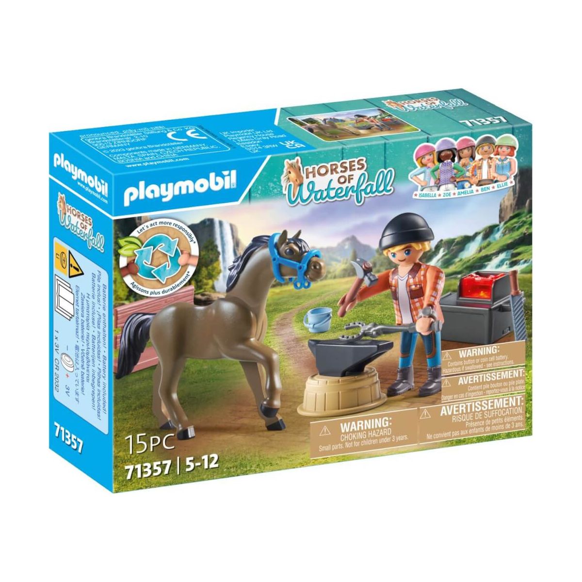 Ben ist Hufschmiedpraktikant auf der Waterfall Ranch und hat Amboss, Zange und Hammer immer griffbereit. Er kontrolliert und säubert die Hufe, ehe er die Glut der Esse entfacht, um alles für das Beschlagen der Hufe vorzubereiten. Die jeweiligen Hufeisen und Hufnägel sind Spezialanfertigungen für jedes Tier. Es ist nicht immer einfach, aber am Ende des Tages hat Ben die Pferde von Waterfall mit neuen Hufeisen ausgestattet. Sein Mustang-Hengst Achilles, den Ben für das Beschlagen an den Paddock gebunden hat, vertraut ihm mittlerweile blind. Fun Fact: Der vorherige Hufschmied von Waterfall, der altersbedingt nur noch selten auf der Ranch vorbeischaut, hat Achilles in die Obhut von Ben gegeben..