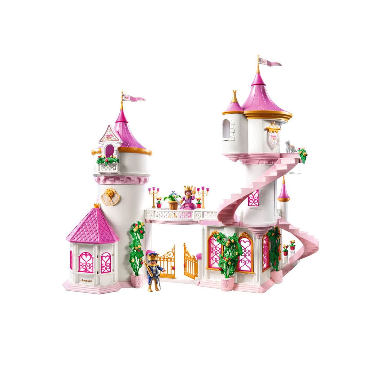 Willkommen im großen Prinzessinnenschloss mit Königspaar von PLAYMOBIL! Hier residiert das königliche Paar in prächtigen Räumen mit ihrer süßen Perserkatze. Das Schloss, geschmückt mit zauberhaften Wendeltreppen und spitzen Türmen, lädt dich ein, den majestätischen Thronsaal zu bewundern, in dem zwei glänzende Throne und ein beeindruckender Kronleuchter auf das Königspaar warten. Das große Tor des Schlosses öffnet sich für die Ankunft der königlichen Kutsche und die vielen Gäste für die regelmäßig stattfindenden Prinzessinnenbälle. Besondere Highlights sind die drehbaren Tanzplatten, auf denen Prinz und Prinzessin zu klassischer Musik tanzen können. Die vielen Zimmer lassen sich ganz nach deinen Wünschen und mit den ergänzenden PLAYMOBIL-Sets ausstatten..