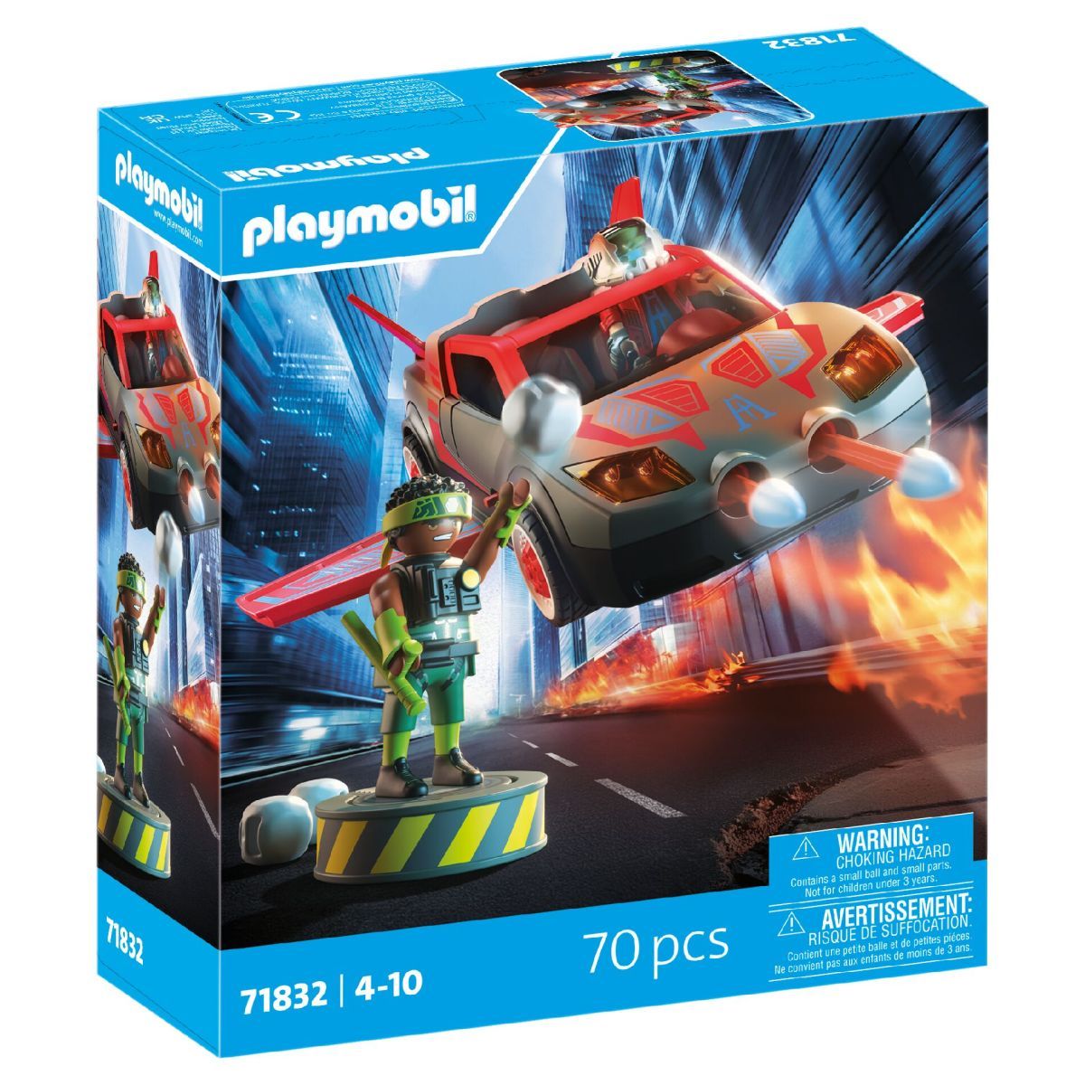 PLAYMOBIL Heroes: Adam Maxx vs. Revolt – Das Multifunktions-Heldenfahrzeug Bereit für jede Mission: Adam Maxx setzt auf sein vielseitiges Multifunktionsfahrzeug, das an Land, in der Luft und auf dem Wasser voll einsatzfähig ist. Am Boden sorgen zwei funktionsfähige Frontkanonen für spannende Action. Für den Flugmodus werden die Tragflächen ausgeklappt, und das Fahrzeug wird bereit für rasante Einsätze in der Luft. Auf dem Wasser bleibt es dank Schwimmkörpern sicher an der Oberfläche, angetrieben von zwei Propellerturbinen. Revolt bringt mit seinem Sprung-Podest Chaos ins Spiel, indem er Steine auf Gegner katapultiert. Adam Maxx hält mit seiner neuen Hand-Kanone dagegen, die Geschosse abfeuert und deren Munition praktisch im Heck des Fahrzeugs verstaut werden kann..