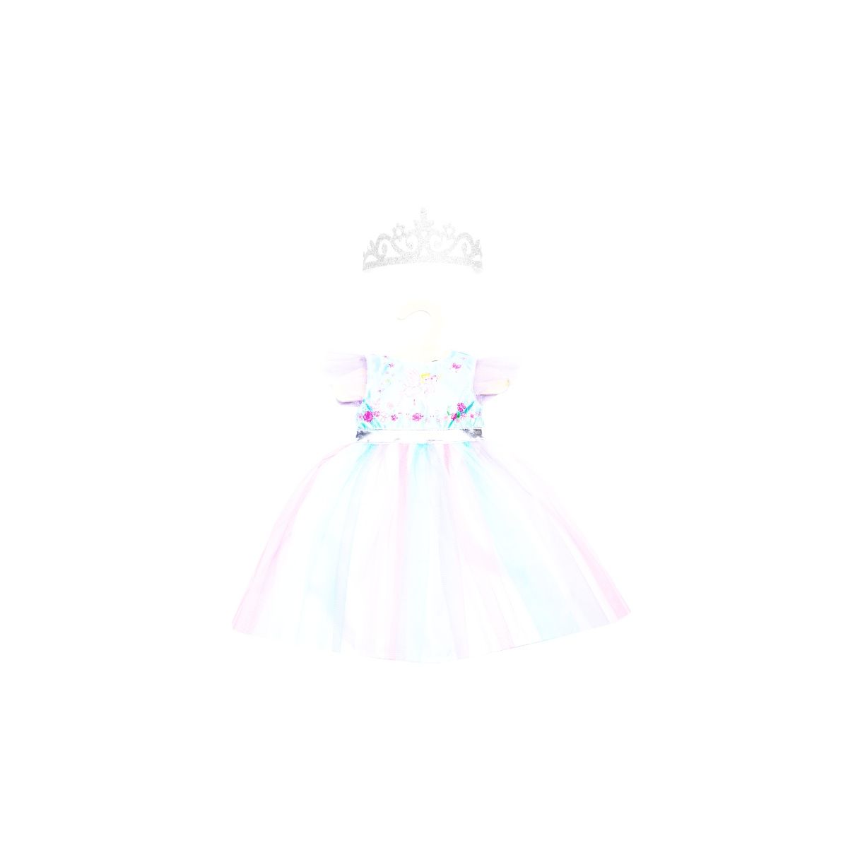 Puppen-Kleid Fee und Einhorn mit silberner Krone, Gr. 35-45 cm