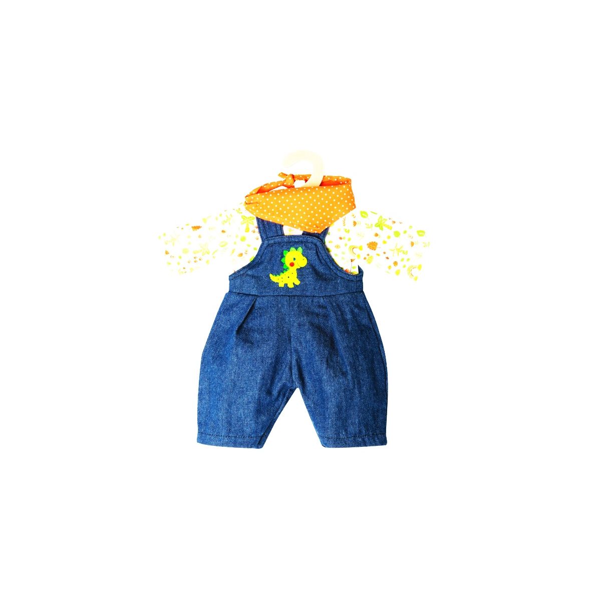 Puppen-Latzhose Dino, 3-teilig, Gr. 28-35 cm