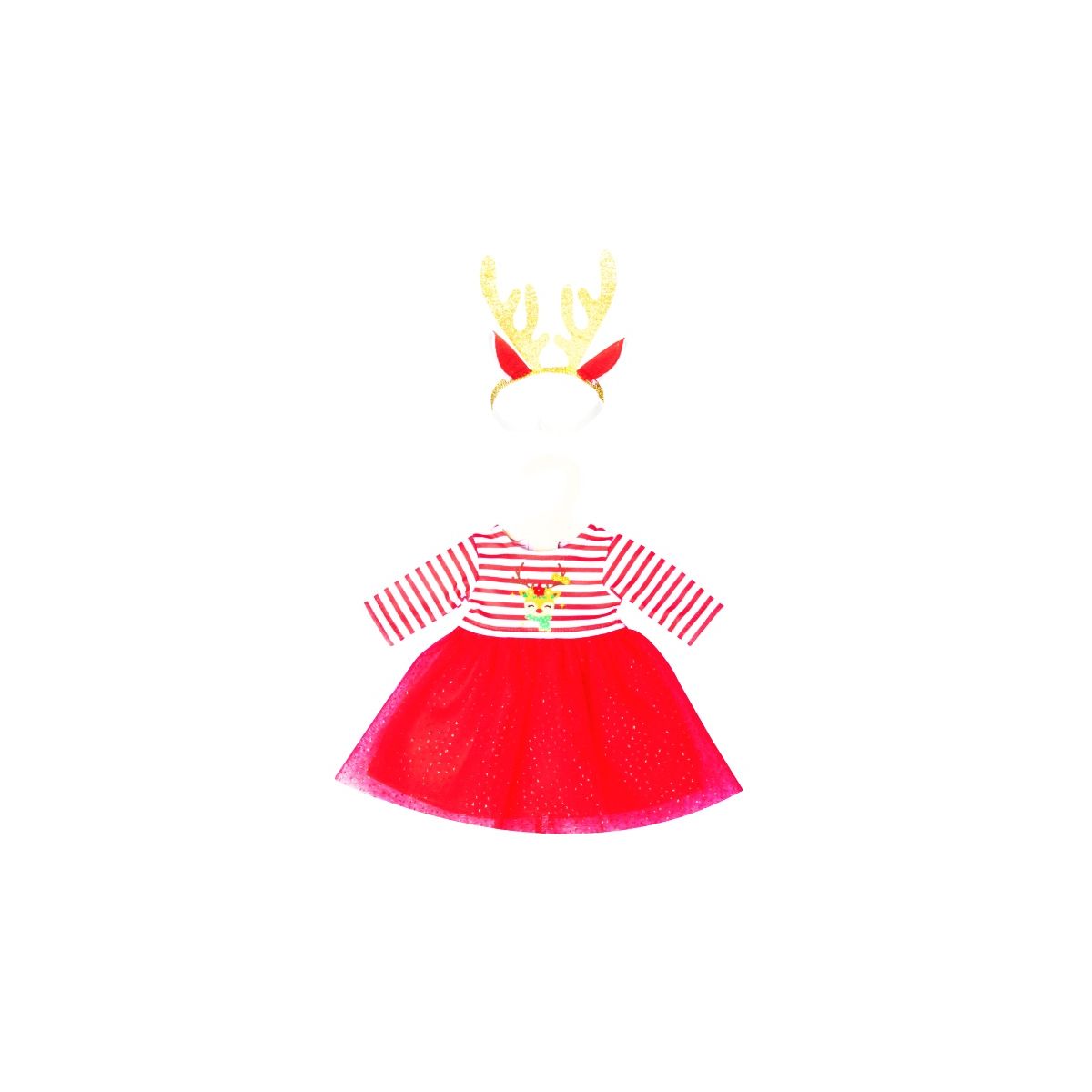 Puppen-Weihnachtskleid mit Haarband Rentier Rudi, Gr. 28-35 cm