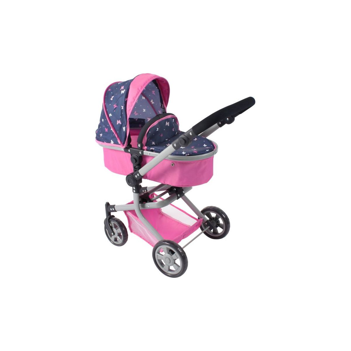 Topmodisch gestylter Kombi-Puppenwagen mit vielen praktischen Funktionen und schickem Gestell. Die schwenkbaren Vorderräder ermöglichen kinderleichtes Kurvenfahren. Der Sportsitz hat einen Sicherheitsbügel und lässt sich mit wenigen Handgriffen zum Wannenaufsatz mit ebener Liegefläche verwandeln. Die Abdeckung der Babywanne dient gleichzeitig als Winddecke für den Sportsitz. Der Sportsitz bzw. die Babywanne können beidseitig aufgesteckt werden, sowohl in Fahrtrichtung wie auch mit Blick zur Puppenmutti. Der Schiebegriff ist höhenverstellbar von ca. 47 bis 80 cm und passt sich so nahezu jeder Körpergröße an. Zudem lässt sich der Schieber schwenken, so dass der Puppenwagen von beiden Seiten aus gefahren werden kann. Mit Sonnenverdeck und Gepäcknetz für diverse Utensilien. Der Kombi Mika kann besonders einfach und klein zusammengeklappt werden. Für Puppen bis ca. 52 cm. Artikelmaße: 73 x 41 x 82 cm, Gewicht: 4 kg