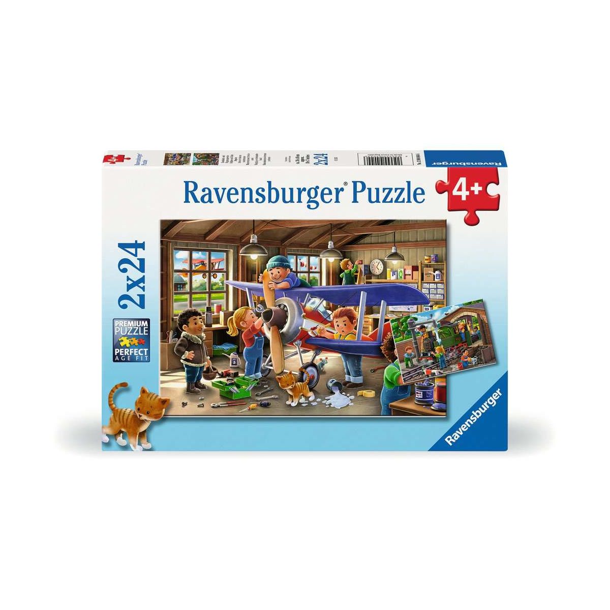 Egal ob Pferd oder Kätzchen, Bagger oder Feuerwehrauto - die farbenfrohen Motive der Ravensburger Puzzlesets 2x24 Teile begeistern Mädchen und Jungen ab 4 Jahren! Gleich zwei Kinderpuzzles sorgen hier für doppelten Puzzlespaß. Inklusive Mini-Postern als Vorlagen. Unsere Puzzles werden in exzellenter Verarbeitungsqualität mit Material aus nachhaltiger Forstwirtschaft gefertigt. Pädagogisch wertvoll und mit ganz viel Lernspaß.Teile suchen, anfügen und sich über das immer größer werdende Bild freuen - Puzzeln ist, wenn sich ein Erfolg an den anderen reiht. Deshalb lieben Kinder es, die Puzzleteile immer wieder zu ihren Lieblingsmotiven zusammen zu setzen. Doch Puzzles bieten mehr als Spaß: Mit der richtigen Schwierigkeit gewählt, lassen sie Kinder jeden Alters an den Herausforderungen wachsen, erhöhen ihre Geduld und stärken ihr Selbstvertrauen. In der großen Auswahl von Ravensburger Kinderpuzzles mit den beliebtesten Motiven, von 2 Teilen bis 300 Teilen, ist garantiert für jedes Kind das Richtige dabei. Die Auswahl der Motive und die hohe Qualität unserer Kinderpuzzles liegen uns sehr am Herzen. Deshalb wird die Unbedenklichkeit aller Materialien von einem unabhängigen Institut bestätigt. Seit mehr als 100 Jahren entwickeln wir Puzzles, wie Kinder sie lieben: altersgerecht in Motiv, Teilezahl und -größe..