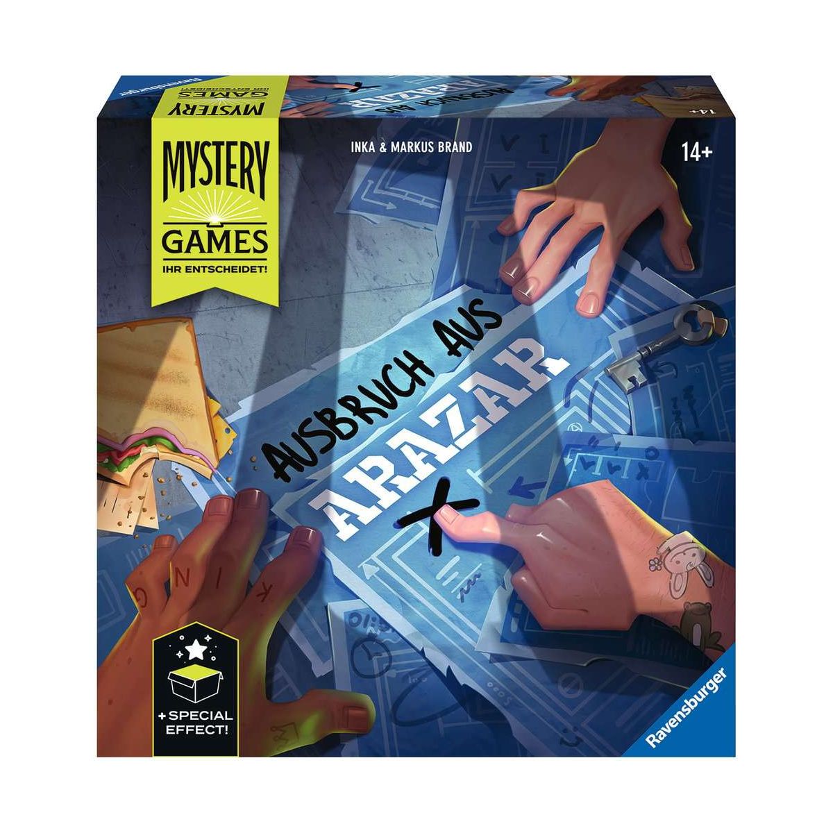 Die Spieler versuchen gemeinsam aus dem Gefängnis auszubrechen. Sie folgen der Spur der Ausbrecherlegende Jack, der das Gefängnis mit einem Plan systematisch nach der schwächsten Stelle abgesucht hat. Alle Teile des Plans, die sich dabei als nutzlos erwiesen, hat er im Gefängnis zurückgelassen. Schafft ihr es herauszufinden, welches Teil fehlt? Dann setzt Jacks letzte Hinweise um und die Freiheit ruft! Auf dem Weg gilt es jede Menge Herausforderungen zu meistern und Entscheidungen zu treffen.Die Spieler sitzen fest - im Gefängnis Arazar. Sie wollen raus, aber das ist natürlich nicht so einfach! Einem Insassen, Jack, ist die Flucht schon gelungen. Auf den Spuren von Jack erkunden die Spieler in 6 Spielrunden gemeinsam das Gefängnis. Hierfür bewegen sie ihre Spielfiguren auf dem Spielplan. Erreicht eine Figur eine Zelle, wird das entsprechende Zellen-Plättchen aufgedeckt. Was verbirgt sich in dieser Zelle? Haben die Spieler Glück, finden sie eins der Fluchtplanteile von Jack. Haben sie alle Fluchtplanteile gefunden, können sie versuchen, auszubrechen! Dafür müssen sie jedoch noch Jacks Rätsel lösen ... Im Laufe des Spiels begegnen die Spieler verschiedenen Personen und treffen wichtige Entscheidungen. Je nachdem, wofür sich die Spieler entscheiden, entwickelt sich die Geschichte bei jeder Partie anders. So kann Mystery Games - Ausbruch aus Arazar beliebig oft gespielt werden..