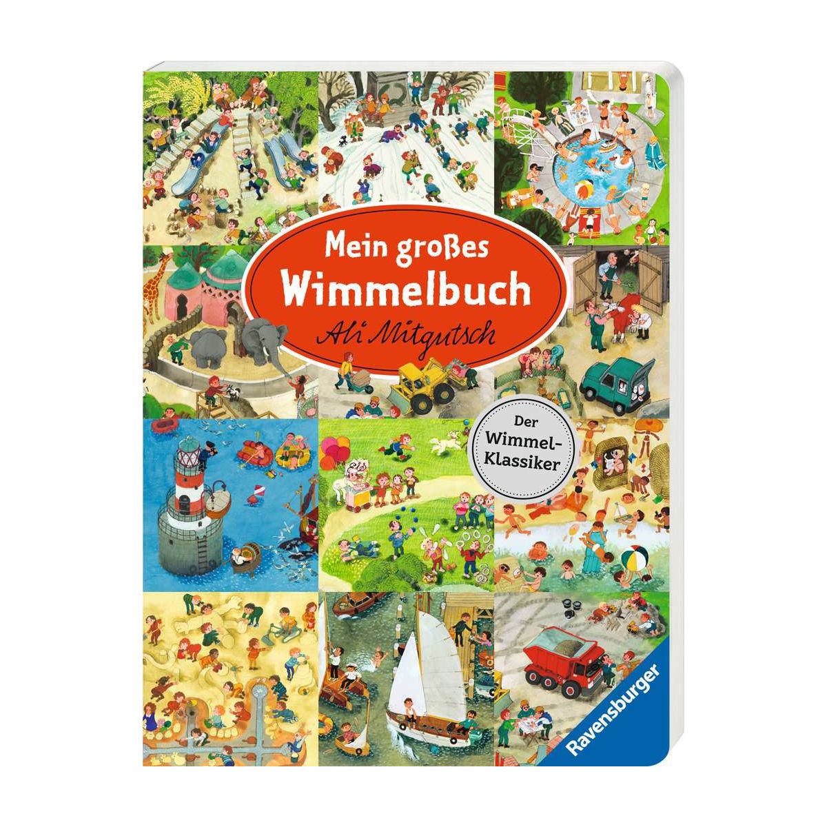Endloser Bilderbuchspaß für alle großen und kleinen Ali Mitgutsch Fans! Ali Mitgutsch versteht es wie kein anderer, Geschichten ganz ohne Worte zu erzählen und zieht mit seinen Wimmelbüchern seit Generationen Kinder in seinen Bann. Diese Jubiläumsausgabe führt Kinder anhand bunter Wimmelbilder auf den Bauernhof, ans Wasser, in den Zoo, auf eine Baustelle, in die Berge und an viele weitere Orte mehr. Überall gibt es viele lustige Details zu entdecken. Das macht Spaß und hilft beim Sprechen lernen!Ali Mitgutsch, der als Erfinder der Wimmelbilder gilt, begeistert seit über 50 Jahren mit seinen humorvollen und besonders detaillierten Wimmelbildern. Ihm gelingt es, ganz ohne Worte, in jedem Bild zahllose kleine Geschichten zu erzählen und in ganz verschiedene Welten zu entführen.Mit Ali Mitgutsch ist man in der Stadt, auf dem Land, am Wasser oder auch in den Bergen unterwegs. Er zeigt uns den Stadtpark im Frühling und im Winter. Mit ihm kann man einen Flohmarkt und einen Riesensandspielplatz besuchen. Er geht mit uns auf einen Rummelplatz und zum Baden an den Strand. Auf einer Baustelle zeigt er uns alle großen und kleinen Fahrzeuge, die für die Arbeit gebraucht werden. Und bei einem Besuch im Zoo kann man viele fremde Tiere sehen. In seinen Wimmelbildern stecken viele Details, welche die kindliche Phantasie anregen, zum Weitererzählen inspirieren und damit beim Sprechen lernen unterstützen..