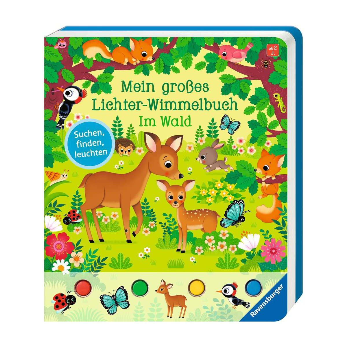 Mit über 50 Lichtern den Wald entdecken! Überall wimmelt es vor kleinen und großen Tieren.Kannst du alle Rehkitze, Siebenschläfer oder Bienen finden?Die Lichter helfen dir dabei!Einfach auf den Knopf drücken und die Lichter verraten dir, wo sich die Waldbewohner verstecken.Ein lustiges Mitmach-Lichter-Such-BuchSuche die Tiere im Wald! Über 50 Lichter helfen dir.In diesem wimmeligen Waldbuch entdecken Kinder ab 2 Jahren viele spannende Tiere. Auf der Lichtung haben sich 2 Rehkitze versteckt. In den Baumkronen kannst du drei Spechte finden. Und unter der Erde tummeln sich drei Dachse. Kannst du sie alle finden?Drücke einfach auf die bunten Knöpfe unten im Buch! Dann leuchten kleine Lichter auf und zeigen dir, wo sich die Igel, Füchse oder Siebenschläfer verstecken. Ganz nebenbei lernen die Kleinen die Tiere des Waldes zu benennen und werden zu ersten Zählversuchen angeregt.Die Knopfbatterien sind für Kinder nicht zugänglich und lassen sich bei Bedarf mit Hilfe eines Kreuzschraubendrehers austauschen. Das Buch hat außerdem einen An- und Ausschalter. Alle eingesetzten Materialien sind unbedenklich und werden regelmäßig getestet..