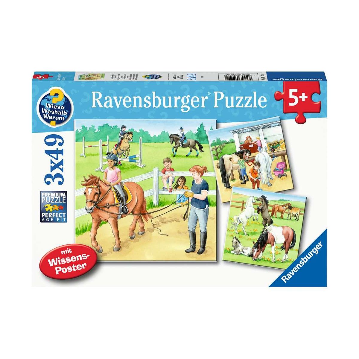 Die beliebte und bekannte Buchmarke Wieso? Weshalb? Warum? gibt es jetzt auch als Puzzle! Stück für Stück tauchen die Kinder beim Puzzeln in die Welt der Pferde ein und erkunden das Gelände eines Reiterhofs. Ein toll gestaltetes Wissensposter liefert spannende Zusatzinfos und geht näher auf die Pflege, Fütterung und Sprache der Pferde ein. Ein Muss für jeden Pferde-Fan!Teile suchen, anfügen und sich über das immer größer werdende Bild freuen - Puzzeln ist, wenn sich ein Erfolg an den anderen reiht. Deshalb lieben Kinder es, die Puzzleteile immer wieder zu ihren Lieblingsmotiven zusammen zu setzen. Doch Puzzles bieten mehr als Spaß: Mit der richtigen Schwierigkeit gewählt, lassen sie Kinder jeden Alters an den Herausforderungen wachsen, erhöhen ihre Geduld und stärken ihr Selbstvertrauen. In der großen Auswahl von Ravensburger Kinderpuzzles mit den beliebtesten Motiven, von 2 Teilen bis 300 Teilen, ist garantiert für jedes Kind das Richtige dabei. Die Auswahl der Motive und die hohe Qualität unserer Kinderpuzzles liegen uns sehr am Herzen. Deshalb wird die Unbedenklichkeit aller Materialien von einem unabhängigen Institut bestätigt. Seit mehr als 100 Jahren entwickeln wir Puzzles, wie Kinder sie lieben: altersgerecht in Motiv, Teilezahl und -größe..
