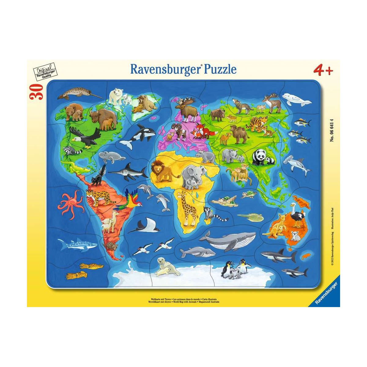 Ravensburger 6641 Puzzle Weltkarte mit Tieren 30-48 Teile