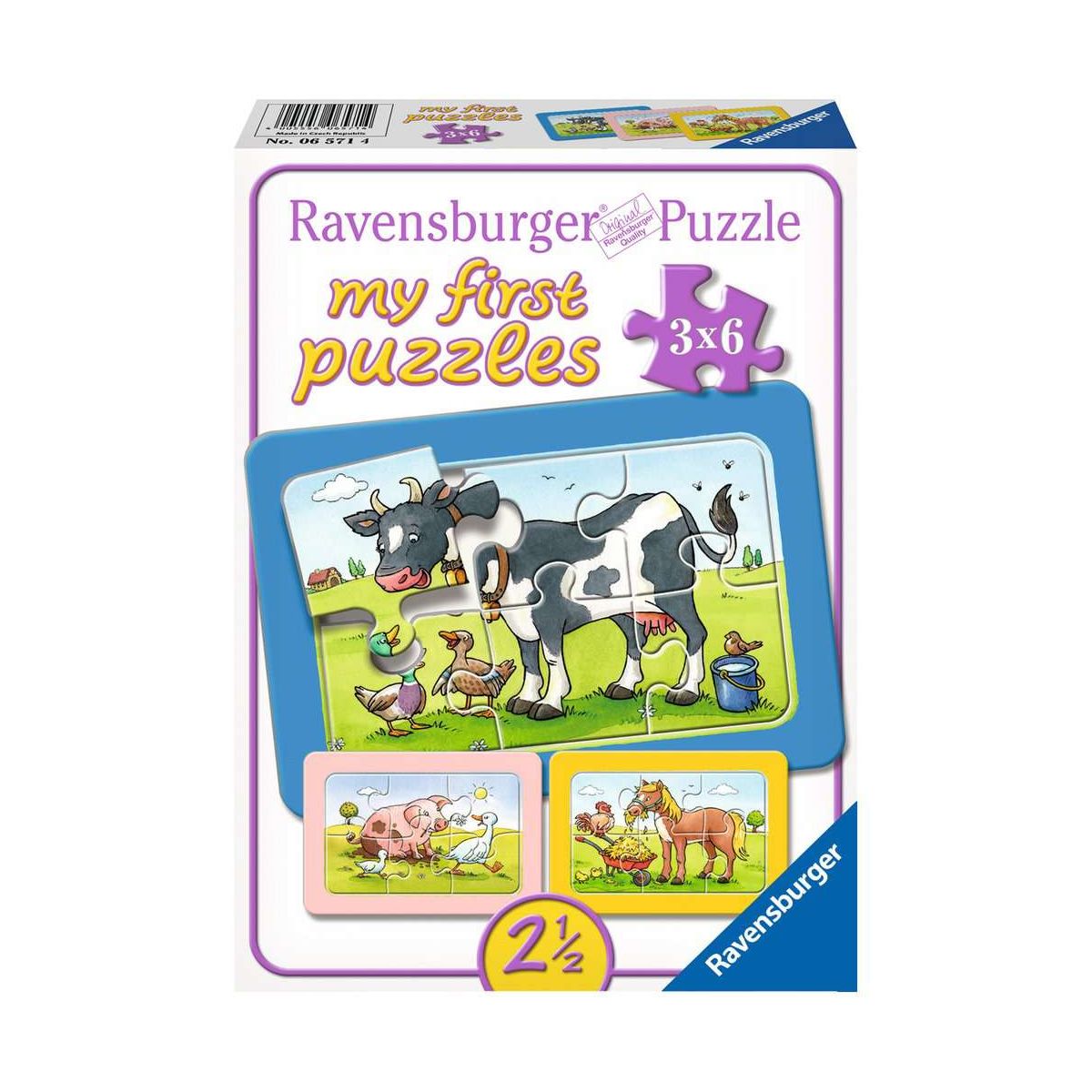 Ein ganzes Puzzle alleine lösen! Das klappt mit den sechsteiligen Rahmenpuzzles von my first puzzles schon bei den Kleinsten. Mit ihrer geringen Teilezahl und den großen Puzzleteilen sind die drei Rahmenpuzzles optimal für Kleinkinder geeignet. Die liebevoll illustrierten Motive zusammen zu setzen kann am Anfang eine ziemliche Herausforderung sein, doch mit ein bisschen Übung gelingt es schon bald und macht richtig Spaß. Stabile Teile aus Pappe garantieren die Langlebigkeit des Spielzeugs.Erste Rahmenpuzzles für Kinder ab 2,5 Jahren. Beim Puzzeln schulen die Kinder spielerisch das räumliche Denken, ihre Geduld und die Auge-Hand-Koordination. Übrigens: Für die schon etwas geübteren kleinen Puzzler können Sie die Schwierigkeit erhöhen, indem Sie die Teile von zwei oder drei Rahmenpuzzles vermischen. Mit dem richtigen Puzzle für die individuelle Entwicklungsstufe begreifen Kleinkinder ihre Umwelt spielerisch und mit Freude und wachsen an den Herausforderungen. Die altersgerechten Puzzles von Ravensburger zeigen Bilder aus der Lebenswelt der Kinder, die die Kleinen begeistern. Falls ihr Kind auch gerne alles mit dem Mund erforscht: Die Unbedenklichkeit aller verwendeten Materialien wurde von einem unabhängigen Institut bestätigt. Seit mehr als 100 Jahren entwickeln wir Puzzles, wie Kinder sie lieben: altersgerecht in Motiv, Teilezahl und -größe..