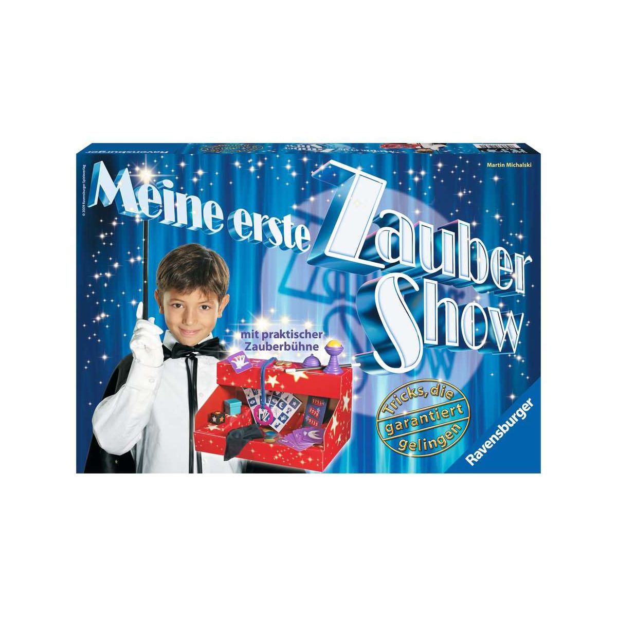 Der Ravensburger Zauberkasten ist ein Klassiker, der einfache und spannende Tricks für Kinder ab 6 Jahren bietet. Der Zauberer-Nachwuchs lässt bald schon den Zauberstab schweben, macht eine Zauberschlinge oder führt verrückte Zahlentricks vor. Wie? Das wird hier nicht verraten, denn wer Tricks verrät, verdirbt den Zuschauern von Meine erste Zaubershow den Spaß. Mit leicht verständlicher Anleitung und coolen Zaubersprüchen gelingt jeder verblüffende Trick. Für den erfolgreichen Auftritt verwandelt sich die Verpackung in eine tolle Zauberbühne.Das Zaubern fördert die Geschicklichkeit, die Feinmotorik und das Aufführen das Selbstbewusstsein der Kinder. Außerdem haben die jungen Magier die Auswahl zwischen drei Zaubershows, wobei die Tricks immer anspruchsvoller werden. Tolle Zaubermusik für ?Meine erste Zaubershow? können sich die Zauberlehrlinge downloaden. Außerdem werden die Zauberer durch erklärende Videos beim Erlernen ihrer Tricks unterstützt. Der Zauberkasten eignet sich auch ideal als Geschenk zum Geburtstag oder Weihnachten..