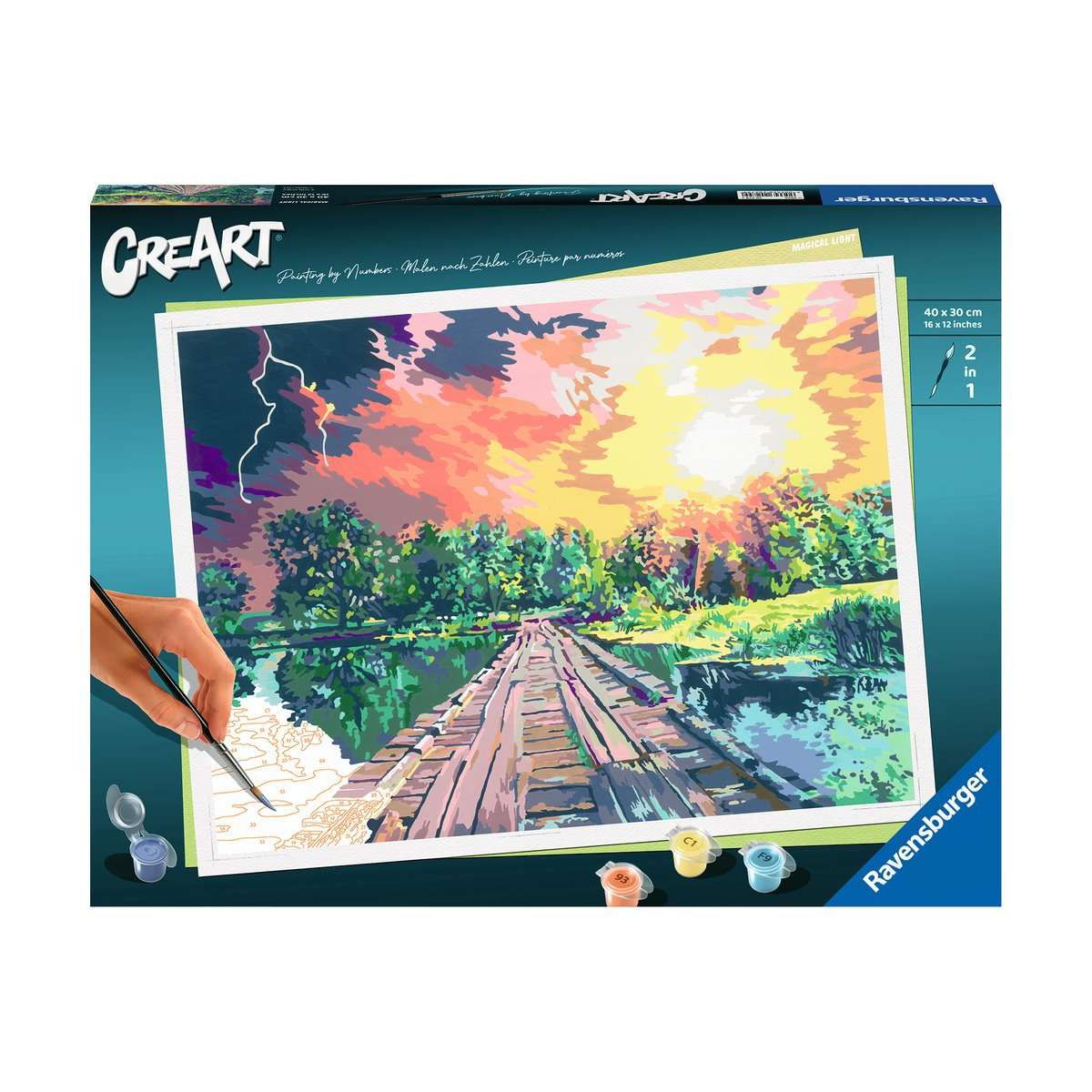 Das schöne CreArt Premium Motiv Magisches Licht von Ravensburger sorgt für großartigen Malspaß für Erwachsene ab 14 Jahren und pure Entspannung. Die Motivlinien sind bereits aufgedruckt und nummeriert und werden mit den bereits fertig gemischten Acrylfarben ausgemalt. Das ist Malspaß mit Erfolgsgarantie für einen einzigartigen Wandschmuck für das eigene Zuhause oder zum Verschenken. So einfach war malen noch nie!Mit CreArt - Malen nach Zahlen von Ravensburger den Weg zur inneren Ruhe und Entspannung finden und sich beim genauen Ausmalen in entfernte Städte und Landschaften träumen.Einfach auspacken und los malen: jedes Malset enthält alles, was zum Malen benötigt wird und es ist kein Mischen der Farben notwendig.Das Ravensburger CreArt - Malen nach Zahlen Programm bietet eine große Motivauswahl für Kinder und Erwachsene..