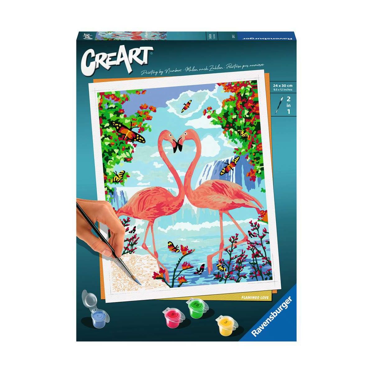 Coole Motive, leuchtende Farben und glänzender Lack für ein perfektes Finish.Das coole Motiv Flamingo Love liegt voll im Trend und sorgt für großartigen Malspaß für Erwachsene ab 12 Jahren. Die Motivlinien sind bereits aufgedruckt und nummeriert und werden mit den fertig gemischten Acrylfarben ausgemalt. Das ist Malspaß mit Erfolgsgarantie für einen einzigartigen Wandschmuck, der voll im Trend liegt. So einfach war malen noch nie!Mit Malen nach Zahlen von Ravensburger den Weg zur inneren Ruhe und Entspannung finden. Einfach auspacken und los malen: jedes Malset enthält alles, was zum Malen benötigt wird und es ist kein Mischen der Farben notwendig.Das fertig gemalte Bild eignet sich als trendige Dekoration in jedem zu Hause.Das Ravensburger Malen nach Zahlen Programm bietet eine große Motivauswahl für Kinder und Erwachsene..