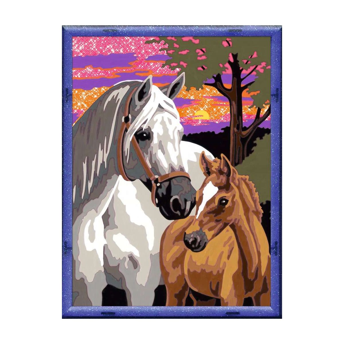 Farbige Motivlinien: Größerer Malspaß & ein schöneres Ergebnis!Dank der farbigen Motivlinien, können die Kinder das ganze Motiv Pferde im Sonnenuntergang und die Farben schneller erkennen. Der Pinsel hat eine gute Führung und so entsteht ein perfektes Bild.Die schönen Motive zum Ausmalen sind eine tolle Geschenkidee für Kinder ab 9 Jahren und eine schöne Dekoration. In diesem Malset sind bereits 15 fertig gemischte Acrylfarben enthalten. Verpackungsdesign kann abweichen. Mit Malen nach Zahlen von Ravensburger lernen die Kinder Flächen sorgfältig auszumalen, ihr Maltalent zu verbessern sowie feinmotorische Fähigkeiten zu entwickeln. Am Ende stehen Freude, Stolz und ein Erfolgserlebnis, das die Lust am Weitermalen weckt.Die Motive sind altersgerecht in drei Schwierigkeitsstufen umgesetzt: von einfachen Bildern mit wenigen, großen Malflächen bis hin zu Bildern mit vielen, kleinen Malflächen für Fortgeschrittene.Jedes Malset enthält alles, was Künstler zum Malen brauchen und es ist kein Mischen der Farben notwendig. Zusätzlich zur Maltafel, zu den Farben und zum Pinsel, ist in diesem Malset funkelnder Glitter enthalten. Sobald das Motiv fertig ausgemalt ist, wird der Glitter angemischt und aufgetragen. So entsteht wird das Motiv zum Glitzern gebracht.Das Ravensburger Malen nach Zahlen Programm bietet eine große Motivauswahl für Kinder und Erwachsene..