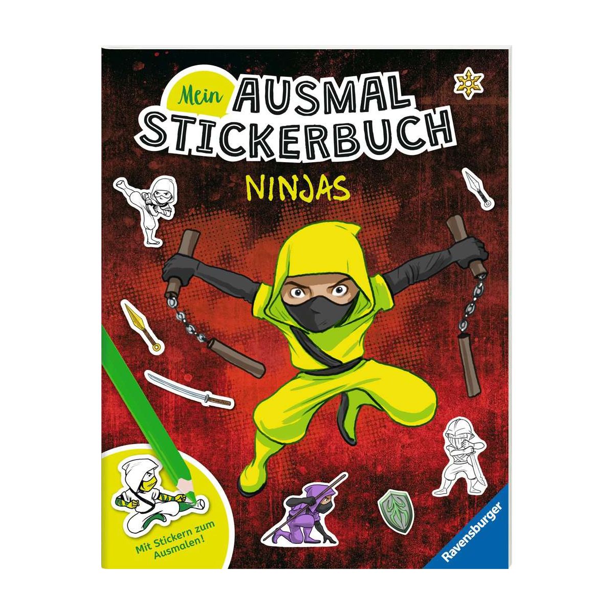 Hier werden Malen und Stickern aufs Schönste vereint - mit ausmalbaren Stickern!Ninja-Fans finden in diesem Heft 12 abwechslungsreiche Szenen zum individuellen Gestalten vom Kampf mit dem fliegenden Feuerdrachen oder der Riesenkobra über die Verteidigung der Felsenfestung bis hin zum Wettkampf in der Ninja-Arena. Mit über 250 Ninja-Stickern sowie anderen Motiven können Kinder nach Lust und Laune kreativ sein und stickern was das Zeug hält. DAS BESONDERE: Nicht nur die Szenen können ausgemalt werden, viele der Sticker selbst sind AUSMALBAR! Kinder lieben Malen, Kinder lieben Stickern.Dieses Konzept bietet beides zusammen an: So entstehen unzählige Möglichkeiten, kreativ zu werden.Auf das Thema abgestimmte, abwechslungsreiche Szenen laden zum Anmalen ein. Zusätzlich stehen super viele Sticker zur Verfügung, um diese Szenen frei auszuschmücken.Das hört sich toll an? Es wird noch viel besser: Viele der Sticker können selbst bemalt werden. Das macht so richtig Laune und das Ergebnis ist individuell und doppelt kreativ..