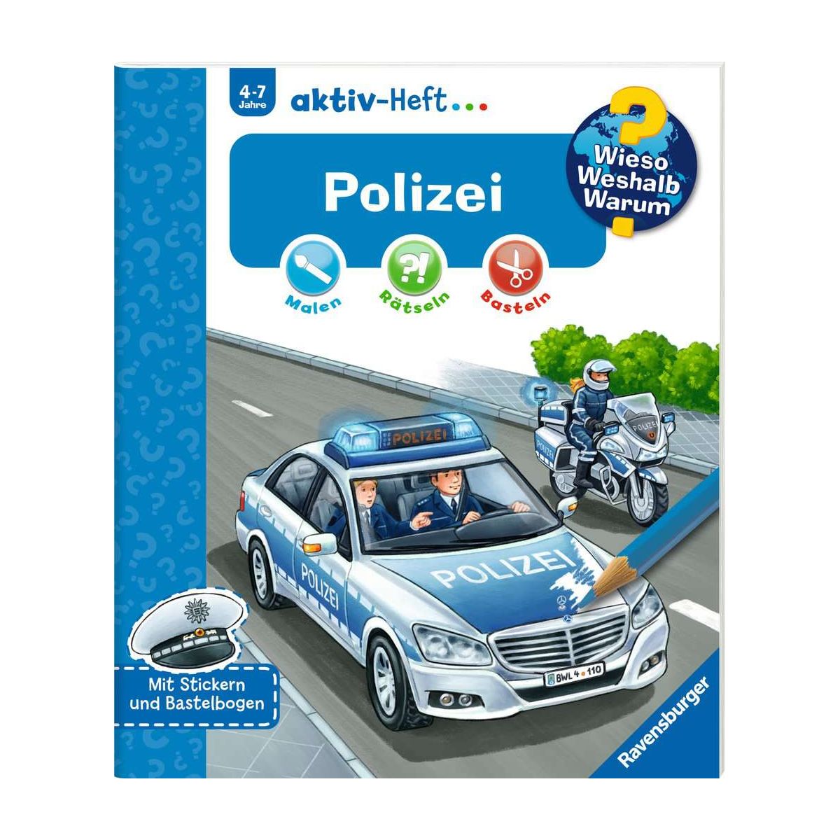 Wie wird man Polizist? Was passiert auf der Wache? Welche Polizeifahrzeuge gibt es? Kinder erstellen in diesem Heft eigene Phantombilder, gehen mit dem Polizeihund auf Spurensuche in einem Rätsel und basteln ein Funkgerät aus Pappe. Auf der Streife mit dabei: Aufregendes Sachwissen, Sticker und Ausmalbilder zur Arbeit der Polizei.Wieso? Weshalb? Warum? aktiv-HeftMalen, Rätseln und Basteln für Kinder von 4-7 JahrenMit den Wieso Weshalb? Warum? aktiv-Heften erschließen Kinder sich ihre Lieblingsthemen selbstständig. Große Bilder laden zum Ausmalen ein. Kurze, kindergerechte Texte vermitteln Sachwissen, das durch abwechslungsreiche Rätsel auf spielerische Weise vertieft wird. Einfache Experimente und vielfältige Spielanregungen sorgen für viel Spaß. Darüber hinaus laden Bastelideen und Sticker Kinder dazu ein, selbst kreativ zu werden..