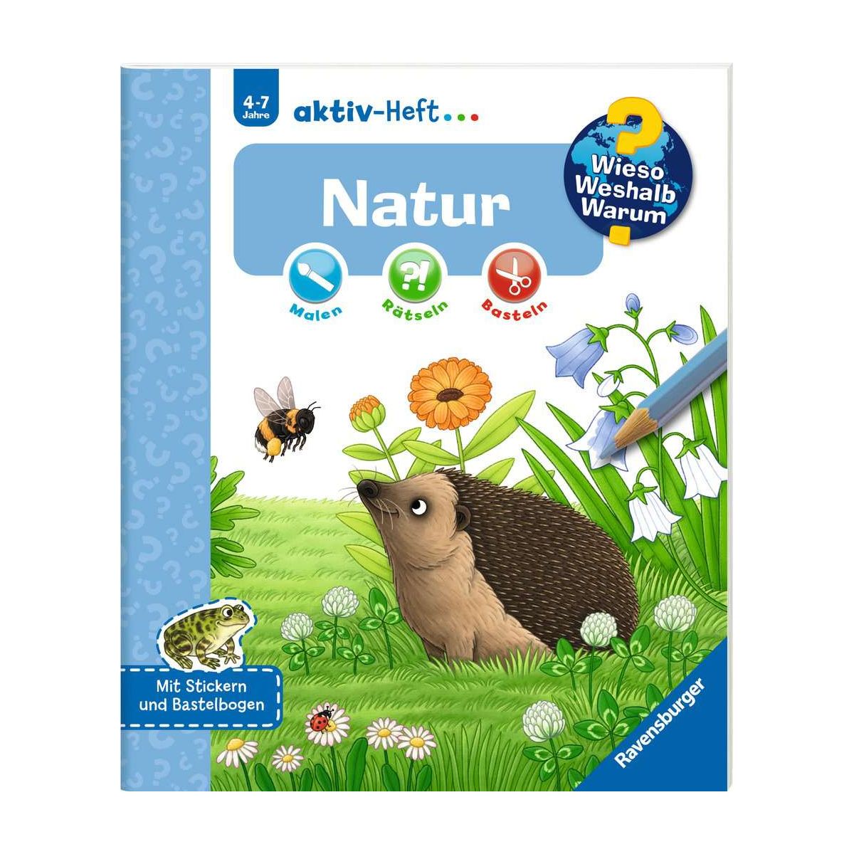 Was man in der Natur alles entdecken kann!Wer summt und schwirrt über die Wiese? Wie passen sich Tiere an das Leben im Wasser an? Und was können wir tun, um die Natur zu schützen? Mit diesem Heft machen Kinder einen Ausflug in die Natur. Sie rätseln, wie die Raupe zum Schmetterling wird, stickern Vögel an den Himmel und basteln sich die Tiere des Waldes als Fingerpuppen. Vom Gebirge über das Meer bis in die Stadt ? überall gibt es Tiere in ihren Lebensräumen zum Ausmalen. Wieso? Weshalb? Warum? aktiv-HeftMalen, Rätseln und Basteln für Kinder von 4-7 JahrenMit den Wieso Weshalb? Warum? aktiv-Heften erschließen Kinder sich ihre Lieblingsthemen selbstständig. Große Bilder laden zum Ausmalen ein. Kurze, kindergerechte Texte vermitteln Sachwissen, das durch abwechslungsreiche Rätsel auf spielerische Weise vertieft wird. Einfache Experimente und vielfältige Spielanregungen sorgen für viel Spaß. Darüber hinaus laden Bastelideen und Sticker Kinder dazu ein, selbst kreativ zu werden..