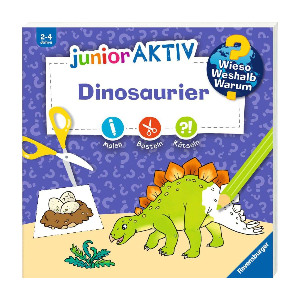 Mit Stift, Schere und Kleber die tollsten Dinosaurier entdeckenWozu brauchen manche Dinosaurier einen langen Hals? Wie viele Hörner hat der Triceratops? Womit verteidigt sich der Ankylosaurus? Spielerisch entdecken Kinder mit diesem Block erstes Sachwissen rund um Dinosaurier und werden kreativ: Sie kleben ein Junges ins Dinosauriernest, malen einen T-rex aus oder rätseln, was Flugsaurier fressen. Zahlreiche Aktivitäten lassen Kinder in ihr Lieblingsthema eintauchen und vermitteln erstes Sachwissen.Wieso? Weshalb? Warum? junior AKTIVErstes Ausmalen, Basteln und Rätseln für Kinder von 2-4 JahrenWieso? Weshalb? Warum? junior AKTIV bietet abwechslungsreiche Beschäftigung für die Kleinen ab 2 Jahren. Zu den beliebtesten Sachthemen finden Kinder hier altersgerechte Ausmalbilder, einfache Formen zum Ausschneiden und Aufkleben und erste Rätsel. In über 20 kreativen Aufgaben gibt es zudem erstes Sachwissen zu entdecken: Dafür sorgen klare Bilder und kurze, leicht verständliche Texte. Das große Format und die stabilen, heraustrennbaren Seiten sind ideal für kleine Hände und können mit verschiedenen Stiften und Farben gestaltet werden. So können Kinder mit viel Freude AKTIV ihre Lieblingsthemen entdecken..