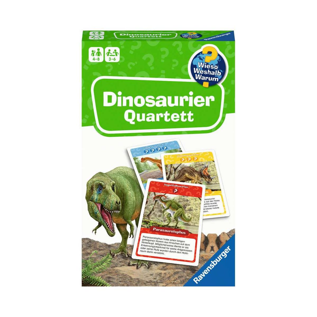 Welcher Dinosaurier hatte die meisten Hörner? Welcher Fleischfresser konnte zwar nicht fliegen, doch mithilfe von Federn durch die Luft gleiten? Ob zu Horn- oder Stacheldinosauriern, zu Langhälsen oder Raubsauriern - in diesem Kartenspiel erfahren spielbegeistere Dino-Fans jede Menge Interessantes zu 32 der imposanten Urzeitwesen aus insgesamt acht Kategorien. Wer die meisten Quartette bestehend aus vier Karten einer Kategorie bilden kann, gewinnt. Mit weiterer Spielvariante.Von Langhals- und Vogelfußsauriern, Stachel-, Panzer- und Dickschädeldinosauriern, bis hin zu einer Kategorie von Urzeitwesen, die zwar Zeitgenossen aber eigentlich gar keine Dinos waren. In diesem Spiel werden 32 faszinierende Urzeittiere aus insgesamt acht Kategorien vorgestellt. Jede Karte überzeugt durch detailreiche Illustrationen und einen Begleittext, der Dino-Fans spannende Zusatzinformationen zu den Dinosauriern und deren Zeitgenossen vermittelt. Jeder Spieler versucht Quartette bestehend aus vier Karten einer Kategorie zu bilden. Wer zum Schluss die meisten gesammelt hat, gewinnt. Außerdem ist mit dem Kartensatz noch eine weitere Variante spielbar: wer am Ende die Karte mit dem ausbrechenden Vulkan auf der Hand hält, verliert. Ein kurzweiliger Spielspaß für 3 - 6 wissbegierige Dino-Fans ab 4 Jahren, im handlichen Format und zum kleinen Preis..