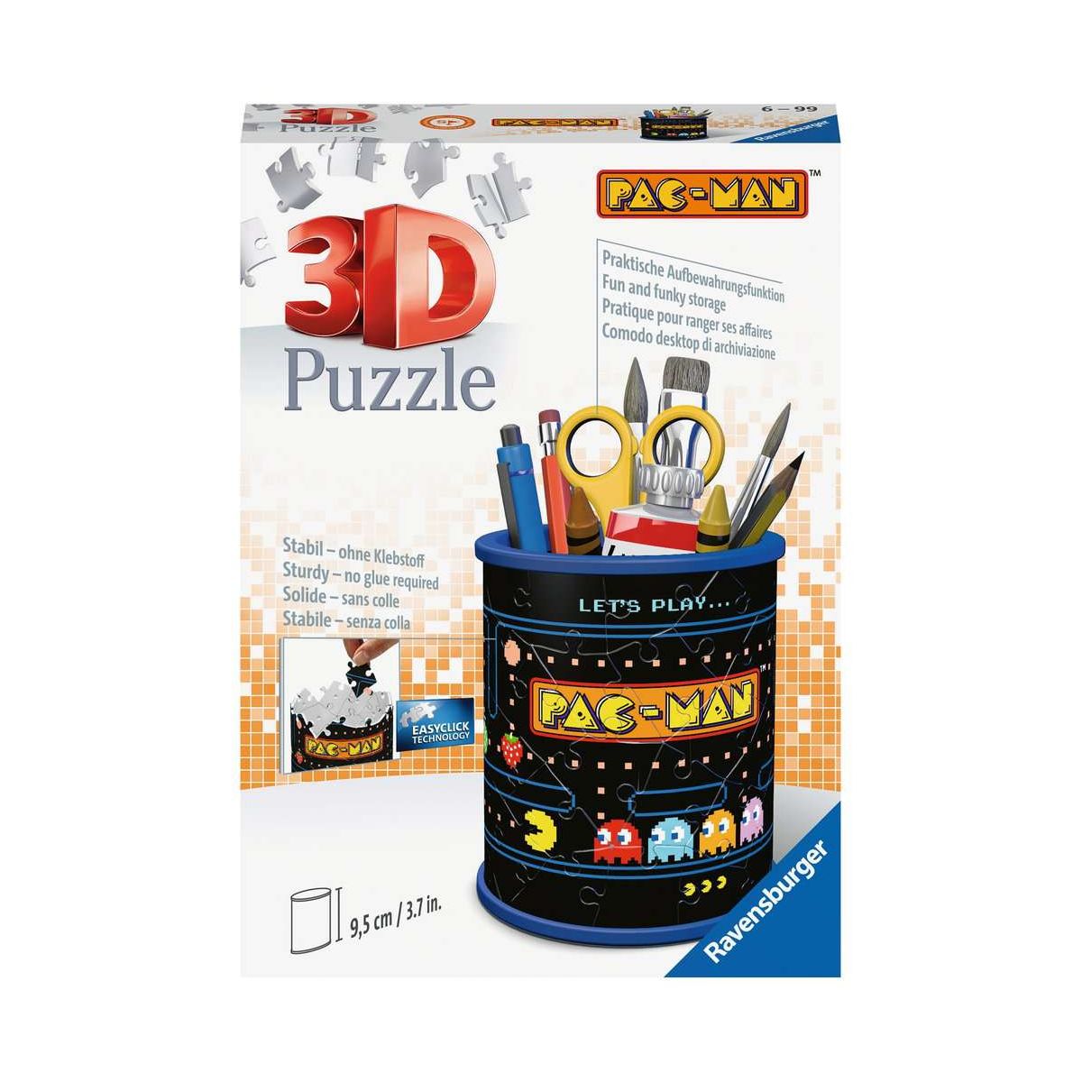 Der superpraktische Stiftehalter mit Pac-Man-Motiv ist nicht nur ein dekorativer Blickfang auf jedem Schreibtisch, sondern bietet auch reichlich Platz für allerlei Schnickschnack.Ein 3D Puzzle, das nicht nur Puzzlespaß bietet, sondern auch gute Dienste leistet: Denn das Utensilo aus 54 nummerierten Kunststoff-Puzzleteilen kann anschließend zur praktischen Aufbewahrung genutzt werden - egal ob als Stiftebox, für kleine Schätze oder anderen Krims-Krams. Dank der bebilderten Anleitung und den Zahlen auf der Rückseite der gewölbten Puzzleteile ist das Puzzeln des Organizers kinderleicht. Auch erwachsene 3D Puzzle-Fans haben große Freude am Puzzeln dieses großartigen Dekoobjekts mit reichlich Platz für Utensilien aller Art..