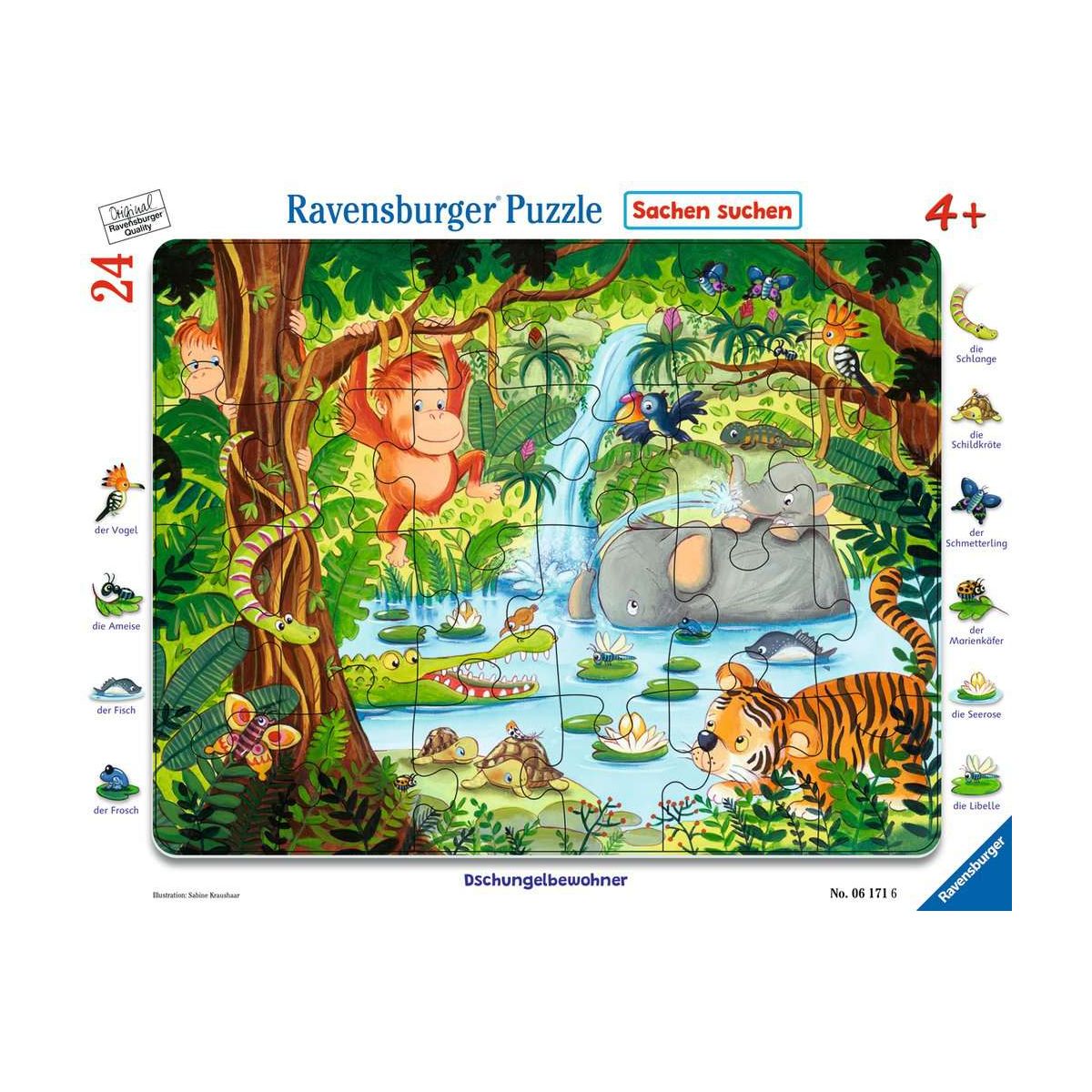 Wo versteckt sich bloß?? Und wer findet zuerst?? Dieses Rahmenpuzzle mit 24 Teilen ist ideal für junge Puzzler ab 4 Jahren geeignet. Der Puzzlerahmen mit den Konturlinien der Puzzleteile erleichtert das richtige Einsetzen und dient zugleich als praktische Puzzleunterlage, auch unterwegs. Die auf dem Rahmen aufgebrachten Elemente des wimmeligen Motivs machen Lust zu Suchen und fördern den Blick fürs Detail.Altersgerechter Puzzlespaß mit Unterlage und extra Suchspiel. Damit schulen die Kinder auch nach dem Puzzeln spielerisch und mit viel Spaß die Wahrnehmung, das Kurzzeitgedächtnis und das logische Denken. Ganz nebenbei verbessern sich auch die Auge-Hand-Koordination und die Geduld. Puzzles mit der richtig gewählten Schwierigkeit lassen die Kinder an der Herausforderung wachsen, stärken ihr Selbstbewusstsein und machen vor allem richtig viel Spaß. In der großen Auswahl von Ravensburger Kinderpuzzles mit den beliebtesten Motiven, von 2 Teilen bis 300 Teilen, ist garantiert für jedes Kind das richtige Puzzle dabei. Die Unbedenklichkeit aller verwendeten Materialien wird von einem unabhängigen Institut bestätigt. Seit mehr als 100 Jahren entwickeln wir Puzzles, wie Kinder sie lieben: altersgerecht in Motiv, Teilezahl und -größe..