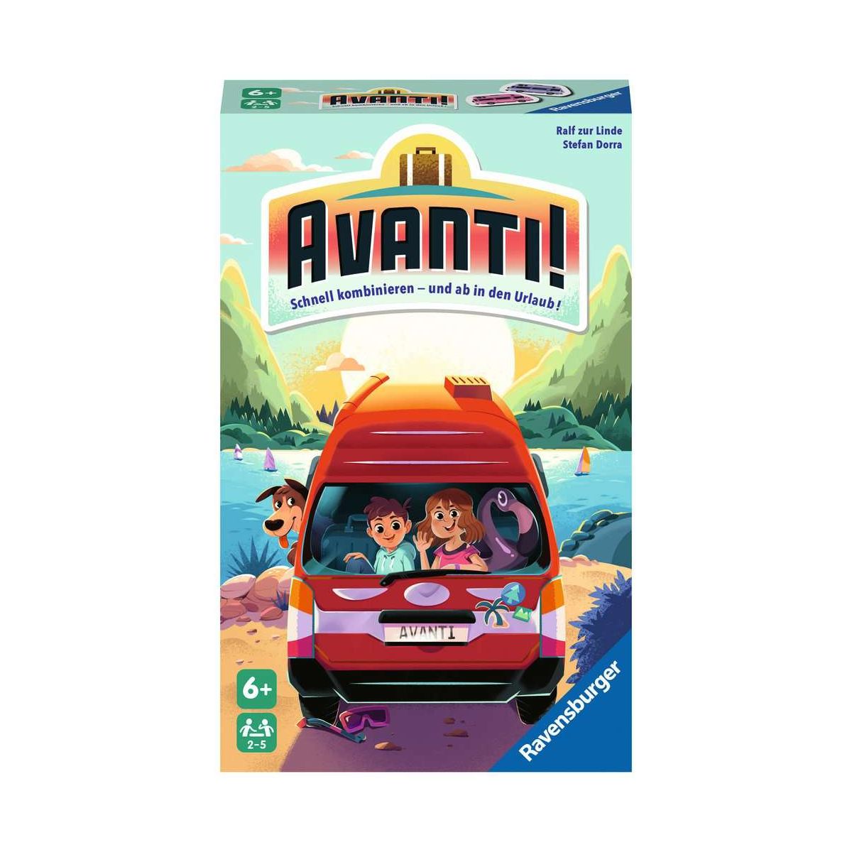 Avanti! Auf geht´s zur Urlaubsreise mit euren Freunden! Doch wohin ihr mit dem Camper reist, erfahrt ihr erst, wenn ihr die Hinweise kombiniert, wohin es NICHT geht! Wer es am schnellsten löst, gewinnt die meisten Punkte und darf mitreisen.Endlich Urlaub und es gibt so viele Ort zu entdecken und coole Aktivitäten auszuprobieren. Alle versuchen herauszufinden: Ist es diesmal eine Reise ans Meer, bei der man zu den Fischen abtaucht? Oder eine Kletterpartie in den Alpen? Aber vielleicht ist es in diesem Jahr auch daheim am Schönsten!Die bunten Camper stehen an immer neuen Orten aufgereiht. Aus sechs verdeckten Hinweisen ermitteln die Spieler, welche Camper und welche Aktivitäten ausgeschlossen werden können. In zwei verschiedenen Spielvarianten kombinieren die Spieler entweder in turbulenten Runde gleichzeitig... oder der Reihe nach. Wer zuerst auf das richtige Reiseziel tippt, erhält Punkte und mit sieben Punkten gewinnt man das Spiel..