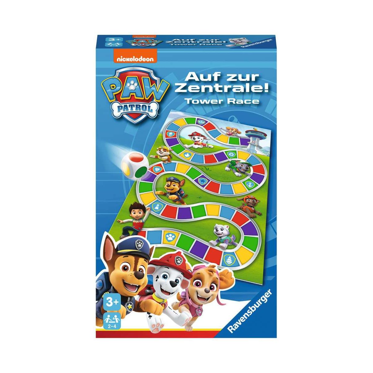 Bei diesem Paw Patrol Farbwürfelspiel erwartet Kinder ein lustiger und spannender Wettlauf zwischen Chase, Marshall, Everest und Sky. Die Spieler helfen dabei den Hundewelpen, als Erstes ihre Zentrale zu erreichen, damit die Paw Patrol wieder Menschen und Tieren in der Abenteuerbucht bei ihren Problemen helfen kann. Mit etwas Würfelglück kommen die Lieblingscharaktere aus der Animationsserie schnell voran und haben somit die besten Chancen, diesen Wettlauf zu gewinnen.Das Würfel-Wettlaufspiel mit den Fellfreunden der Paw Patrol ist schnell erklärt. Die Spieler würfeln reihum und ziehen ihre Spielfiguren auf das nächste passende Farbfeld. Zeigt der Würfel die Farbe Weiß, so darf ein Symbol-Chip gezogen werden und der Spieler darf auf dieses Symbol auf dem Spielplan vorrücken. Kurz vor dem Ziel wird es nochmal spannend: Gibt es vor der Spielfigur kein passendes Farbfeld mehr, muss die Spielfigur zum nächsten passenden Farbfeld zurückziehen. Das Spiel endet, sobald der erste Spieler das Hauptquartiert der Hundefreunde erreicht hat.Das kompakten Format des Kinderspiels eignet sich besonders gut zum Mitnehmen für unterwegs oder auf Reisen und zaubert Paw Patrol Fans, Kindern und Erwachsenen ein Lächeln aufs Gesicht..