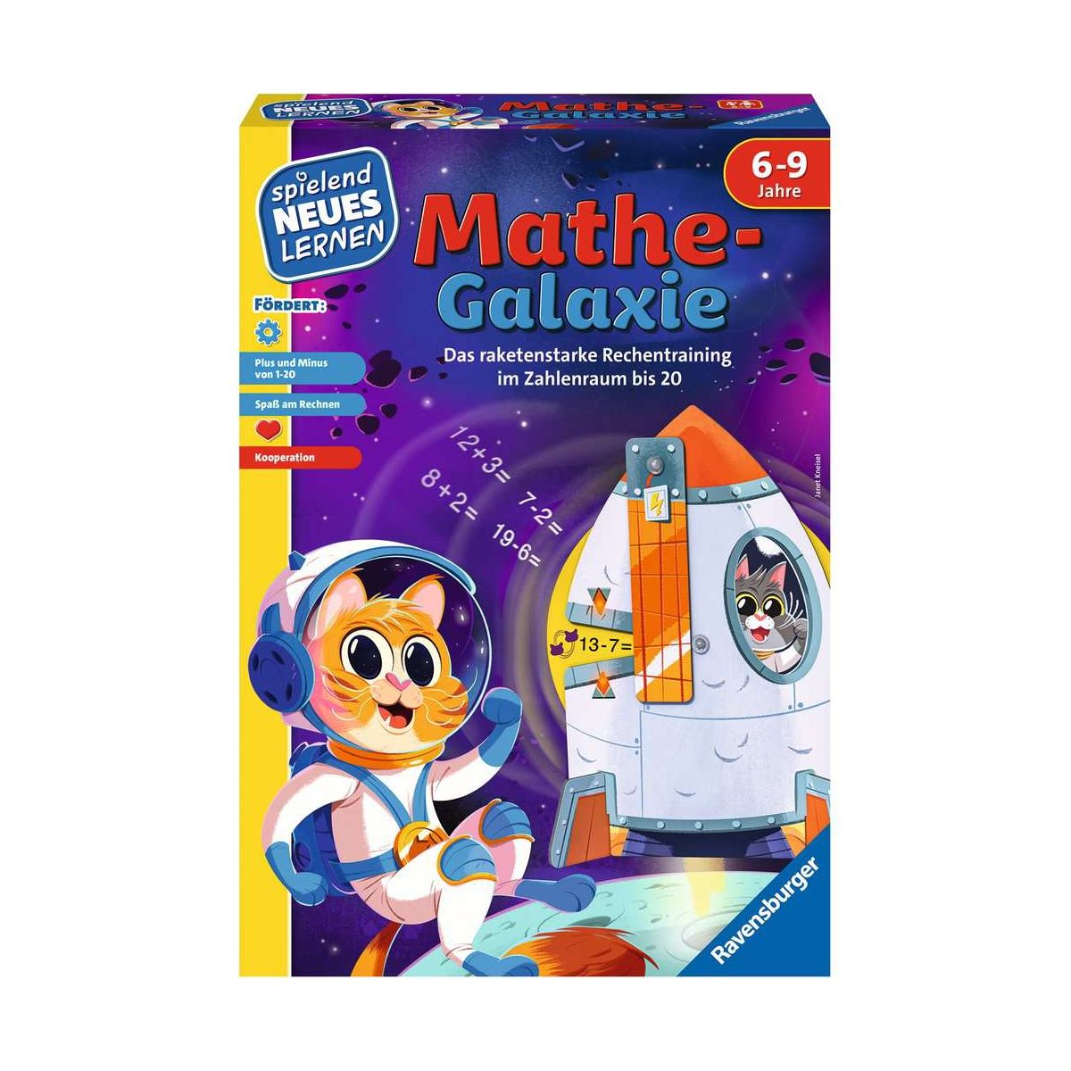 Die Mathe-Galaxie bringt Spannung und Spaß ins Rechen-Training: An der Rakete drehen, Rechnen, Lösung kontrollieren und zuerst sein liebstes Katzen im Weltall Puzzle lösen! Die Mathe-Galaxie kombiniert Spielspaß und Rechnen und ist kooperativ und im Wettbewerb spielbar. Mit der attraktiven Ausstattung und den zahlreichen Spielmöglichkeiten ist es ein ideales Geschenk zur Einschulung oder zur Unterstützung beim Lernen.Dieses Spiel bietet Kindern ein abwechslungsreiches Rechentraining, bei dem sie ihre mathematischen Fähigkeiten erweitern und Konzentration üben. In das attraktive 3-D-Spielgerät, eine Rakete mit beweglichem Sonnensegel, wird eine von sieben Aufgaben-Drehscheiben eingeklippst. Diese enthalten Aufgaben in verschiedenen Schwierigkeitsleveln. Wird eine Aufgabe richtig gelöst, deckt der Spieler ein Puzzlekärtchen auf und vervollständigt eines von 5 Weltraum-Katzen-Motiven. Ist das Motiv komplett, ist das Spiel gewonnen. Mathe-Galaxie ist dabei kooperativ oder im Wettbewerb spielbar. Punktgenau auf den Wissenstand der Kinder abgestimmt, können unterschiedliche Aufgaben gewählt werden. Zum Einstieg eignen sich Aufgaben, in dem Mengen und Zahlen zugeordnet oder Würfelpunkte zusammengezählt werden müssen. Zudem gibt es Aufgaben, bei denen Plus oder Minus bis 10 oder bis 20 geübt werden..