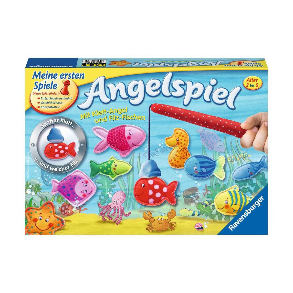 Erstes Spielerlebnis mit flauschigen Meeresbewohnern und Stoff-Angel!  Dieses liebevoll ausgestattete Kinderspiel bietet mit seinen unterschiedlichen Spielvarianten für jeden in der Altersgruppe von zwei bis fünf Jahren den passenden Spielspaß! Hier wird geangelt, was das Zeug hält, kein Seepferdchen beim Schönheitsschlaf gestört und auch kleine Profi-Angler kommen voll auf ihre Kosten.Ziel des Spiels ist es, gemeinsam und mit viel Bewegung alle 9 Fische zu angeln. Dabei werden erstes Regelverständnis, Geschicklichkeit und Konzentration gefördert. Der jüngste Spieler beginnt. Alle geangelten Filz-Fische werden neben dem Aquarium gesammelt. Wer einen Gegenstand angelt, muss eine Aktion ausführen. Der Schuh zum Beispiel bedeutet: Auf der Stelle hopsen. Wer mehrere Gegenstände angelt, macht die Aktionen einfach nacheinander. Das Angelspiel endet, wenn alle Fische gefangen wurden. Außerdem ist es eine super Beschäftigung für Kinder und ein tolles Geschenk..
