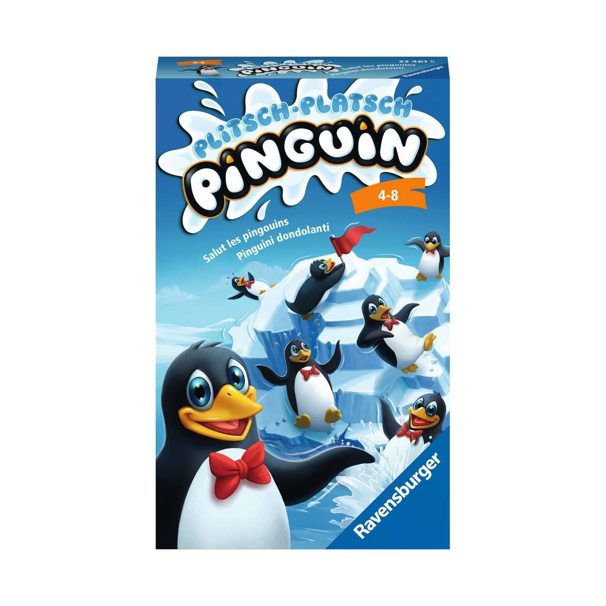 Wackelige Eisscholle in Sicht! Alle 16 Pinguine möchten darauf ihren Platz finden. Die Spieler helfen ihnen dabei. Anfangs ist das noch recht einfach, doch die begehrten Plätze werden immer knapper.Mit jedem neuen Pinguin schwankt die Eisscholle gefährlich und jedes Mal steigt die Spannung erneut: Bleibt er stehen, fällt er herunter oder kippt sogar die ganze Eisscholle?In verschiedenen Spielvarianten versuchen die Spieler entweder gemeinsam, so viele Pinguine wie möglich zu platzieren oder im Wettbewerb, seine Pinguine als Erster auf die Eisscholle zu stellen.Die attraktive 3D-Ausstattung animiert auch zum Solospiel.Plitsch Platsch Pinguin ist eine kompakte Ausgabe des bekannten Geschicklichkeitsspiels und begeistert Kinder ab 4 Jahren.Über RavensburgerSeit 1884 steht die Marke Ravensburger für Spiel & Spaß mit Qualität. Das deutsche Unternehmen wurde als Verlag in Ravensburg gegründet und erfreut seitdem Groß und Klein mit einem breiten Produktangebot von Spielen und Puzzles bis hin zu Büchern und Bastelmaterialien. Neben Spaß wird bei Ravensburger das Lernen großgeschrieben: Der Grundsatz des Gründers Otto Maier lautete damals schon ?Lernen durch Tun? und wird bis heute fortgeführt. So unterstützen die Produkte von Ravensburger spielerisch die Entwicklung von Fähigkeiten für jedes Alter. Toll durchdachte Spiele, ausgeführt in hochwertiger Verarbeitung: Dafür steht das blaue Dreieck von Ravensburger..