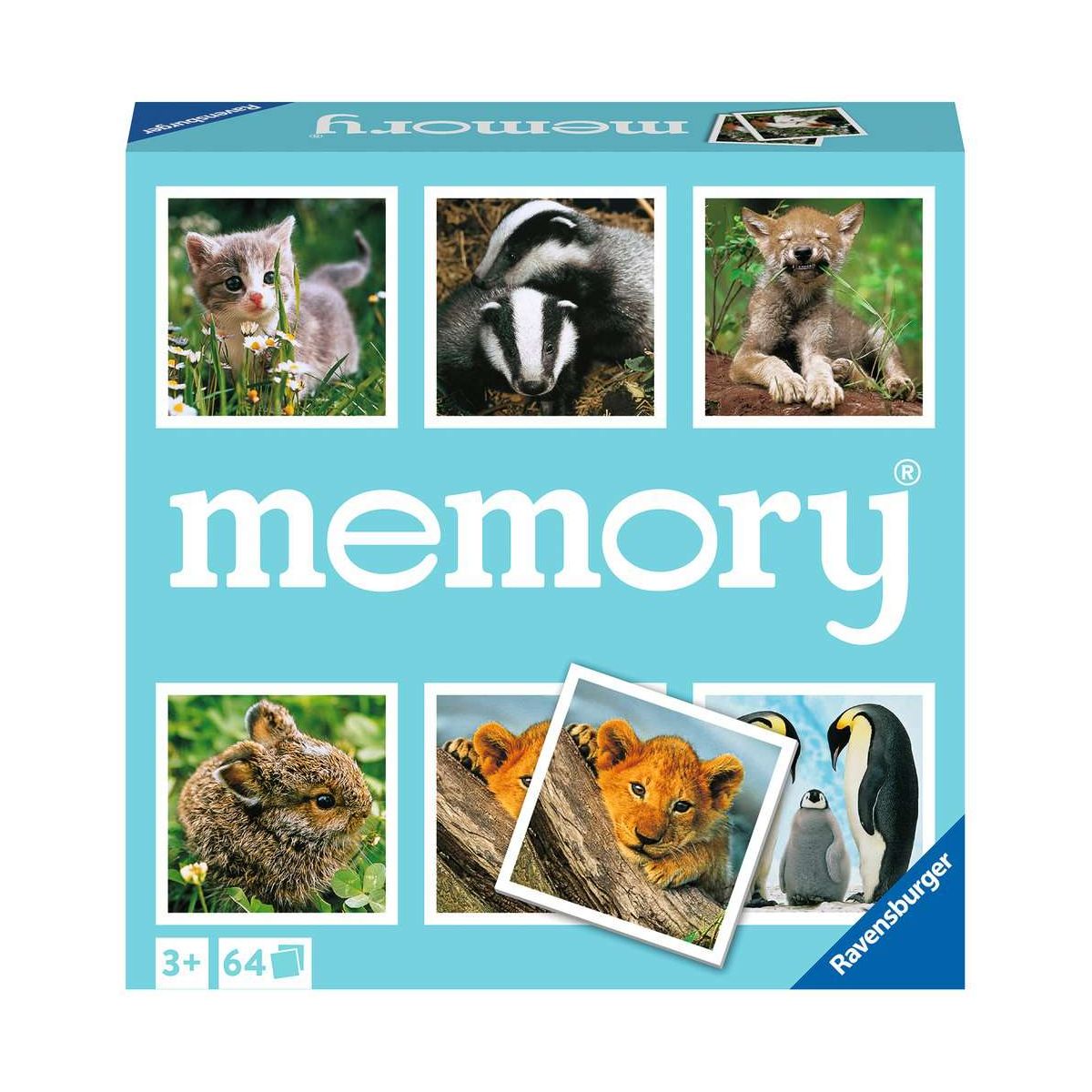 Koala, Kälbchen, Rehkitz und da muss irgendwo noch ein Schimpansen-Baby sein... Wo war es noch gleich? Für spannende Spielrunden verstecken sich niedliche Tierkinder unter den Karten und bringen das Gedächtnis von Kindern und Erwachsenen in Schwung. Bei diesem Ravensburger Spieleklassiker haben die Tierbabys ihren großen Auftritt: Kinder von Haustieren, von Zootieren und von Tieren aus dem Wald liegen verdeckt auf dem Tisch. Wer die meisten Kartenpaare findet, gewinnt. Die spannende Suche nach den passenden Bildpaaren bringt das Gedächtnis von Kindern und Erwachsenen in Schwung! Die Bildkarten in diesem Ravensburger memory® zeigen wunderschöne Fotos von süßen Tierbabys: Kinder von Haustieren, von Zootieren und von Tieren aus dem Wald. Wer ein gutes Gedächtnis beweist, findet die meisten Kartenpaare und gewinnt das Spiel. Für Spielanfänger empfiehlt es sich, mit weniger Kartenpaaren zu beginnen. Profis hingegen können sogar Bildkarten aus anderen Ravensburger memory® Spielen hinzufügen!Das Tierkinder memory® ist ideal als Geschenk zum Geburtstag oder zu Weihnachten für alle Tierfreunde. memory® - der weltbekannte Spieleklassiker begeistert seit Jahrzehnten Kinder und Erwachsene von 3 ? 99 Jahren. Die genial einfachen Spielregeln machen es zum perfekten Familienspiel, bei dem die Kleinen oftmals gegen die Großen gewinnen..