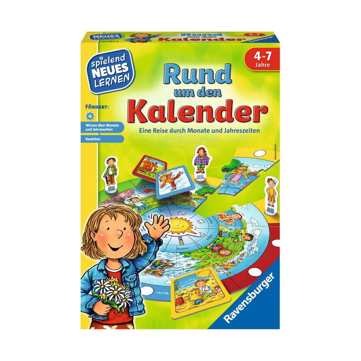 Bei dem Kinderspiel Rund um den Kalender stellen sich die Fragen: Wann piepsen die Vögelchen in ihren Nestern? Wann braucht man Mütze und Schal? Wer kommt mit auf eine spannende und interessante Reise durch die Jahreszeiten? ?Rund um den Kalender? lädt alle Spieler auf eine spannende und interessante Reise durch die Jahreszeiten ein. Die Kinder entdecken, wie sich die Natur verändert und was sie in welcher Jahreszeit unternehmen können. Und wer schnell ist, bekommt auch beim lustigen Schnappspiel viele Bildkärtchen.Anstelle eines Würfels drehen die Spieler bei diesem Lernspiel an der lächelnden Sonne. Und schon landet der erste auf einem Feld mit einer lustigen Bildkarte. Ob die Spieler richtig liegen, überprüfen sie anhand der Farbrahmen auf der Rückseite selbst. Lernspiele, die richtig Spaß machen: So heißt das Motto der Lernspielreihe von Ravensburger, mit der Kinder in den lernintensivsten Jahren in ihrer Entwicklung unterstützt werden. Alle Spiele werden nach neuesten wissenschaftlichen und pädagogischen Standards entwickelt und geprüft. Die Lernstoffe sind in spannenden Geschichten verpackt, eine Vielfalt an Materialien und Methoden erlaubt das Lernen mit allen Sinnen..
