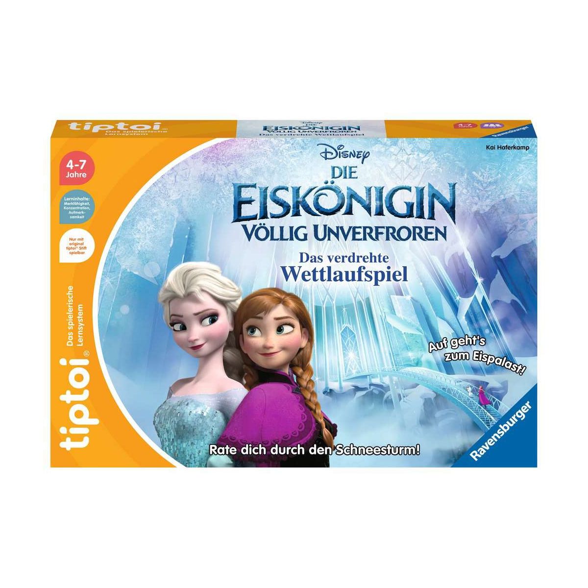 Wer ist die Königin von Arendelle? Wo bekommt Olaf seine Karotten-Nase und wer ist bei den Trollen aufgewachsen? 1 - 4 Spieler ab 4 Jahren stellen sich den kniffligen Fragen rund um Elsa und Anna. Zu jedem Bild erzählt tiptoi die passende Geschichte aus dem Disney Film ?Die Eiskönigin - Völlig Unverfroren?. Mit drehbarem Spielplan, der den Weg zum Eispalast immer wieder ändert. Ein magisches Spielerlebnis, das die Kinder in die zauberhafte Welt von Anna und Elsa eintauchen lässt.Hinter den Bäumen haben sich die Freunde von Anna und Elsa versteckt. Wer sich merkt, wo er die Freunde findet, bekommt eine Frage zum Film Die Eiskönigin - Völlig Unverfroren gestellt. Die Antwort ist auf dem bunt illustrierten Spielplan zu finden. Wer schafft es am schnellsten durch den Schneesturm und gewinnt das Spiel? Das Spiel fördert die Merkfähigkeit, Konzentration und Aufmerksamkeit. Tippen, spielen, lernen! tiptoi macht Bücher und Spiele lebendig. Tippen die Kinder mit dem Stift auf Bilder und Texte, erklingen Geräusche, Sprache und Musik. So macht Lernen richtig Spaß! Das tiptoi-Sortiment umfasst Bücher und Spiele mit den wichtigsten Lern- und Wissensthemen für Kinder ab 2 Jahren. Die zugehörigen Audiodateien lädt man einfach, sicher und schnell über den tiptoi Manager oder die optional erhältliche Ladestation auf den Stift.tiptoi-Stift nicht enthalten. Muss separat erworben werden..