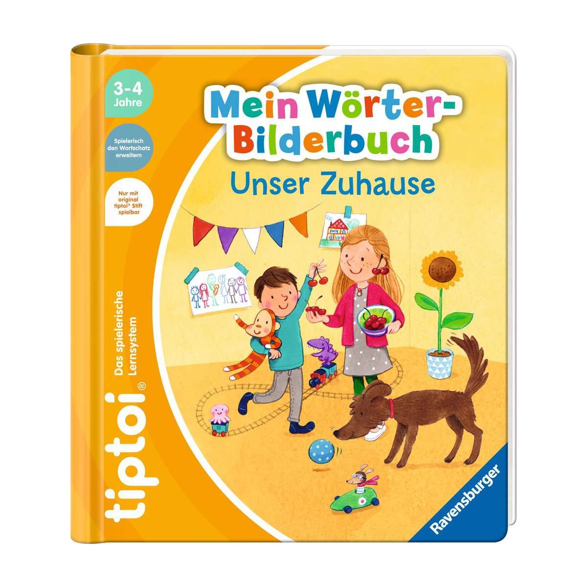 Wörterlernen leicht gemacht: Spielerischer SpracherwerbWillkommen bei uns Zuhause! Hier wohnen Schulkind Lara, Kindergartenkind David und Baby Finn gemeinsam mit ihren Eltern, Großeltern und Hund Rocky. Mit tiptoi erwacht das Zuhause der Hoffmanns zum Leben. Was gibt es in der Küche zu entdecken? Welche Farben hat das Spielzeug? Was macht man vor dem Zubettgehen? Kinder erweitern spielerisch ihren Wortschatz und verinnerlichen erste grammatische Strukturen. Spiele und Lieder vertiefen den gelernten Wortschatz. Mit der Reihe tiptoi Mein Wörter-Bilderbuch bauen Kinder spielerisch ihren Wortschatz auf und erweitern diesen selbstständig. Die kurzen, leicht verständlichen Texte eignen sich ideal für Kinder ab 3 Jahren. Jedes Buch zeigt den Kindern bekannte Szenen und Situationen und vermittelt viele vertraute Begriffe aus dem direkten Umfeld und der Erfahrungswelt der Kinder. Überall gibt es spannende Sätze, zahlreiche Dialoge und lustige Geräusche zu entdecken. Dabei sind die einzelnen Begriffe in ganze Sätze eingebunden, um den Kindern erste grammatische Strukturen zu vermitteln. In jedem Buch wird das Gelernte durch kindgerechte und abwechslungsreiche Spiele mit Lösungskontrolle abgefragt und vertieft. Neukomponierte Lieder und liebevolle Geschichten motivieren zum spielerischen Wörterlernen. tiptoi-Stift nicht enthalten. Muss separat erworben werden..