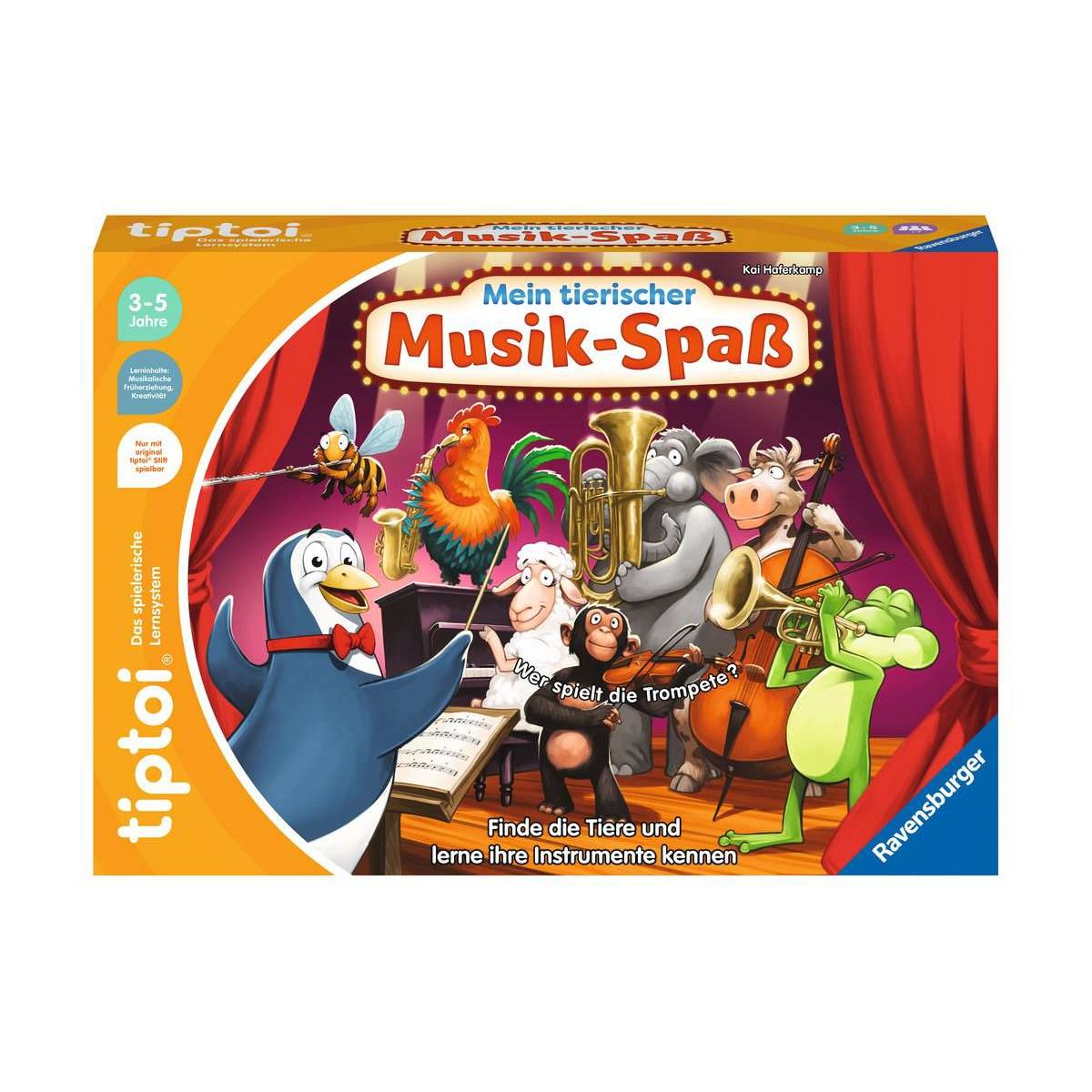 Wer spielt die Trompete? Der Frosch. Und wer die Harfe? Der Hund. tiptoi entführt die Kinder in eine fantastische Welt voller musikalischer Tiere. Jedes Tier spielt ein anderes Instrument. Die Kinder helfen dabei, die Musizierenden zu finden und auf die Bühne zu bringen. Der tiptoi-Stift lässt die verschiedenen Instrumente und viele Kinderlieder erklingen. Ein tierisch-lustiges Musik-Spiel, bei dem schon kleine Kinder Musik erleben und mitmachen können. Ganz ohne Vorwissen tauchen 1-4 Kinder ab 3 Jahren in die Welt der Musikinstrumente ein. Wie hört sich ein Klavier an und warum hat die Querflöte so viele Löcher? Spannendes Sachwissen kindgerecht erklärt, mit vielen Geräuschen und Tonbeispielen um Geige und Co kennen zu lernen.Tippen, spielen, lernen! tiptoi macht Bücher und Spiele lebendig. Tippen die Kinder mit dem Stift auf Bilder und Texte, erklingen Geräusche, Sprache und Musik. So macht Lernen richtig Spaß! Das tiptoi-Sortiment umfasst Bücher und Spiele mit den wichtigsten Lern- und Wissensthemen für Kinder ab 2 Jahren. Die zugehörigen Audiodateien lädt man einfach, sicher und schnell über den tiptoi-Manager oder die optional erhältliche Ladestation auf den Stift.tiptoi-Stift nicht enthalten. Muss separat erworben werden..