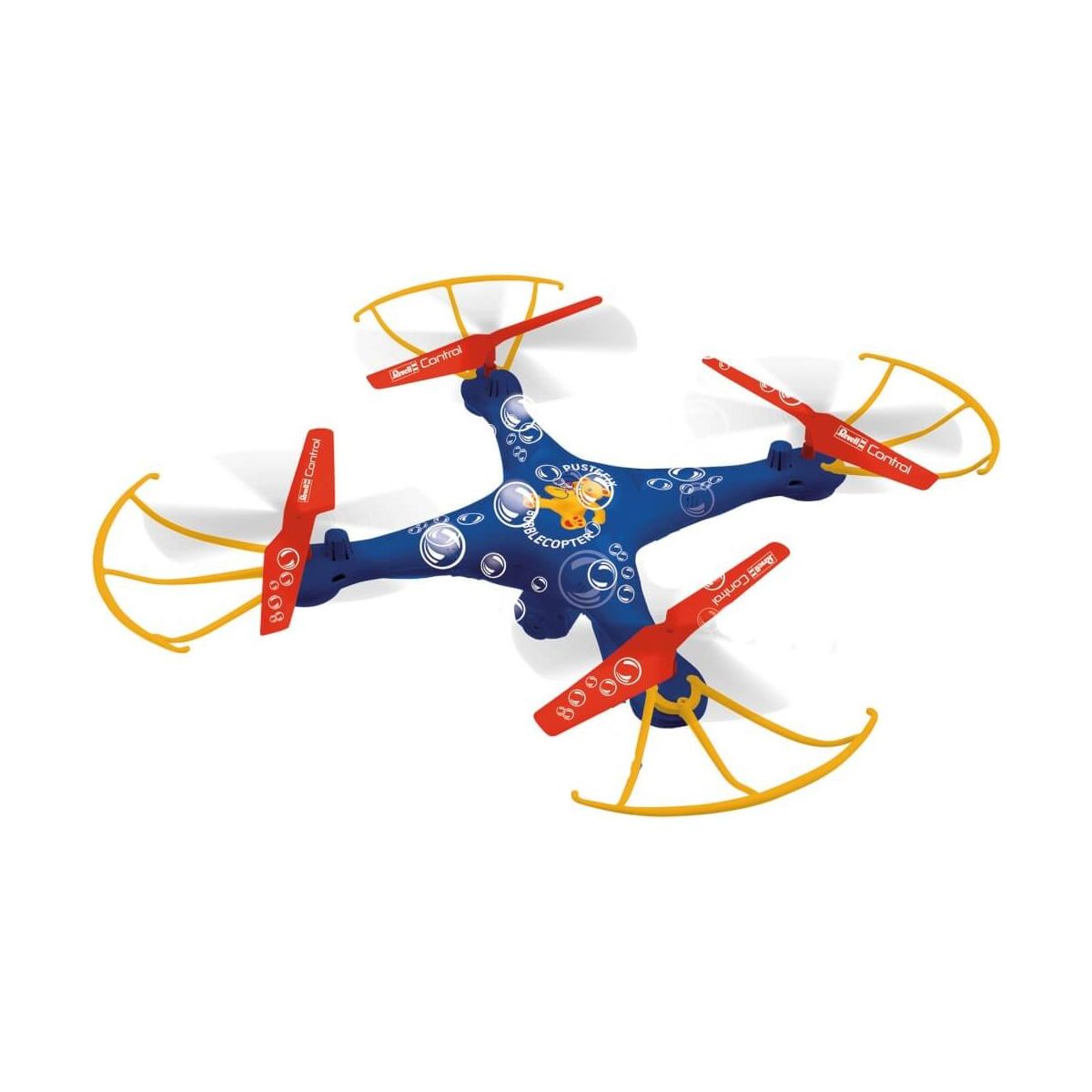 Seifenblasen aus der Luft! Der innovative Revell Control Bubblecopter sorgt nicht nur auf allen Events und Feiern für die richtige Stimmung, sondern auch bei Spaß im Garten oder im Park, denn er füllt die Luft mit schimmernden Seifenblasen von Pustefix. Der Tank des GHz-Quadrocopters wird einfach mit der hochwertigen Seifenblasenflüssigkeit nach dem Original Pustefix-Geheimrezept befüllt und erzeugt auf Knopfdruck an der Fernbedienung schillernde Blasen. Natürlich ist er im Design des Kult-Seifenblasenherstellers mit dem Teddy gestaltet. Der LiPo-Akku ist austauschbar Zusatzakkus sind separat erhältlich ? so kann die beeindruckende Show schnell weitergehen..