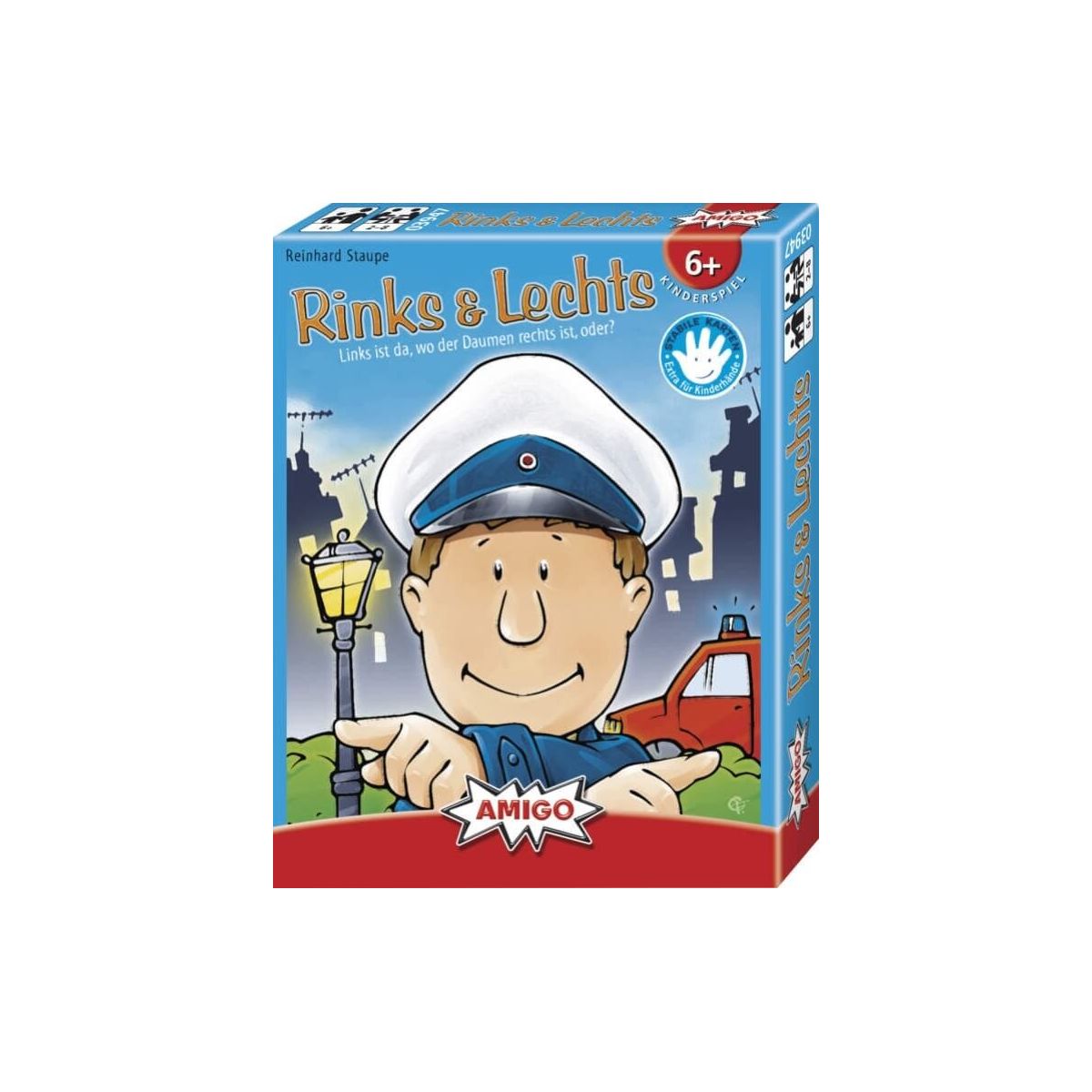 Rinks & Lechts MBE3 Links ist da, wo der Daumen rechts ist, oder? Aber gilt das nur von vorne betrachtet oder auch von hinten? Vielleicht kann die Polizei ja weiterhelfen. Wer Probleme mit der Rechts-Links-Orientierung hat, der sollte sich dieses Spiel auf keinen Fall entgehen lassen. Witzig ist es allemal ? und eines ist klar: Es ist nie zu spät ... Das Kinderkartenspiel Rinks & Lechts fördert die Rechts-Links-Unterscheidung und das räumliche Vorstellungsvermögen. So spielt man Rinks & Lechts MBE3: * Die sieben Polizisten liegen kreisförmig angeordnet offen in der Tischmitte. Manche sieht man von vorne, andere von hinten. * Eine Aufgabenkarte wird vom Stapel aufgedeckt. Auf der Aufgabenkarte sind drei Bewegungen angegeben, die von einem Polizisten ausgehend nacheinander ausgeführt werden müssen. Zum Beispiel: Fange bei dem Polizisten mit dem Haus an. Gehe aus seiner Sicht vier Schritte nach rechts. Danach, aus Sicht des dortigen Polizisten, einen Schritt nach links. Zum Schluss noch, aus Sicht des dortigen Polizisten, drei Schritte nach links. * Eine Bewegung muss immer aus Sicht des Polizisten durchgeführt werden. Nach links heißt immer: vom Polizisten aus gesehen nach links. Und nach rechts bedeutet: vom Polizisten aus gesehen nach rechts. * Wer zuerst weiß, bei welchem Symbol man nach Durchführung der drei Bewegungen landet, ruft schnell den dazu- gehörigen Begriff. Als Gewinn erhält der Spieler die aufgedeckte Aufgabenkarte. * Wer zuerst sechs Aufgabenkarten besitzt, ist Sieger. Inhalt: 50 Spielkarten 1 Spielanleitung Maße: 12,3 x 9,7 x 2,2 cm Autor: Reinhard Staupe Grafik: Oliver Freudenreich Erfolgsfaktoren: * Fördert die Rechts-Links-Orientierung * Auch für größere Kinder und mitspielende Erwachsene ein Spaß.