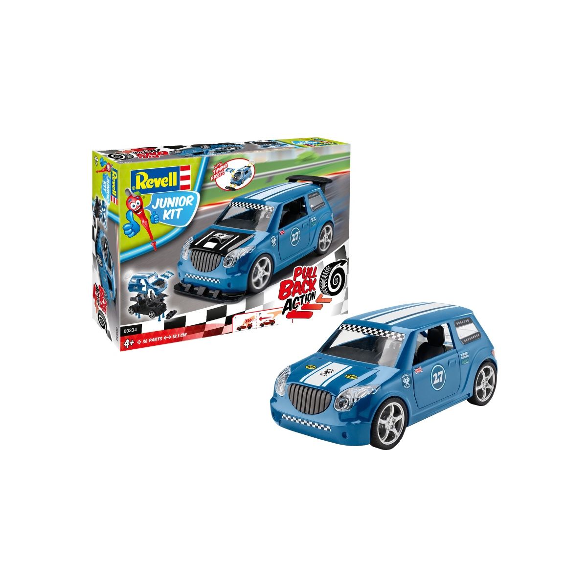 Einfach zurückziehen und der Junior Kit Rennwagen gibt richtig Gas! Zuerst wird das Fahrzeug mit dem bekannten Junior Kit Schraubsystem zusammengebaut und dann sorgt der Rückzieh-Motor für coole Rennduelle. Mit den beiliegenden Tuning-Teilen lässt sich die Optik des Fahrzeugs immer mal wieder verändern. Einfach mit dem Junior Kit Schraubendreher ein paar Teile lösen, Tuning-Teile austauschen und weiter geht die Fahrt im neuen Look. 36 Teile zum einfachen Zusammenbau für alle kleinen Rennfahrer ab 4 Jahren. Einfach zurückziehen und der Junior Kit Rennwagen gibt richtig Gas! Zuerst wird das Fahrzeug mit dem bekannten Junior Kit Schraubsystem zusammengebaut und dann sorgt der Rückzieh-Motor für coole Rennduelle. 36 Teile. Lieferumfang: Kunststoffmodellbausatz (nicht zusammengebaut) Kindgerechte Bauanleitung Sticker.