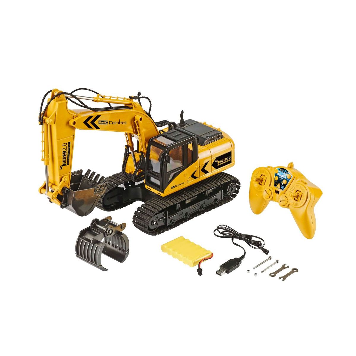 Erfülle Dir Deinen Traum vom Baggerfahren. Denn die kräftige Schaufel aus Metall räumt die größten Berge ab und sollte doch noch ein Brocken liegen bleiben, rüstet man einfach auf den Greifer aus Metall um. Der abschaltbare Sound macht das Baustellenerlebnis noch realistischer. Für volle Kontrolle sorgt die 6CH-GHz-Fernsteuerung, mit der sich der Aufbau und jedes Element des Arms einzeln ansteuern lassen. Und mit dem kraftvollen Kettenantrieb kommt man fast überall hin - und wenn nicht, einfach mit der Schaufel nachhelfen, genau wie beim großen Vorbild. (2 x 1,5V AA Batterien erforderlich/nicht enthalten) Outdoor-tauglich Schaufel aus Metall Mit zusätzlichem Baumgreifer aus Metall Schaufel, Vorderarm und Hauptarm einzeln steuerbar Mit Akku und Ladegerät Lieferumfang: 1x Modell 1x Fernsteuerung 1x Akku und USB-Ladegerät 1x Baumgreifer 1x Werkzeug zum Wechseln 1x Anleitung.