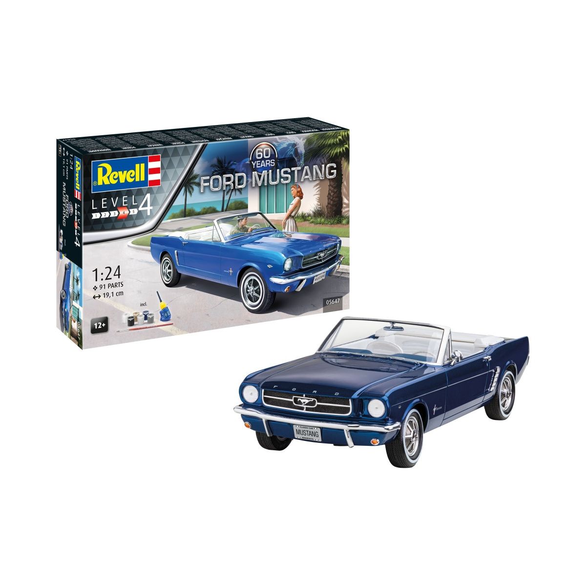 Mit dem Set würdigt Revell das Debüt des Ford Mustangs im März 1964. Unter anderem wegen des sportlichen Aussehens und einer Fülle an Ausstattungsvarianten erzielte das Pony Car einen beachtlichen Erfolg, der bis heute anhält. - Mehrteiliger V8- Motor - Diverse Chromteile - Authentische Abziehbilder Neben Basisfarben sind auch Kleber und Pinsel enthalten..