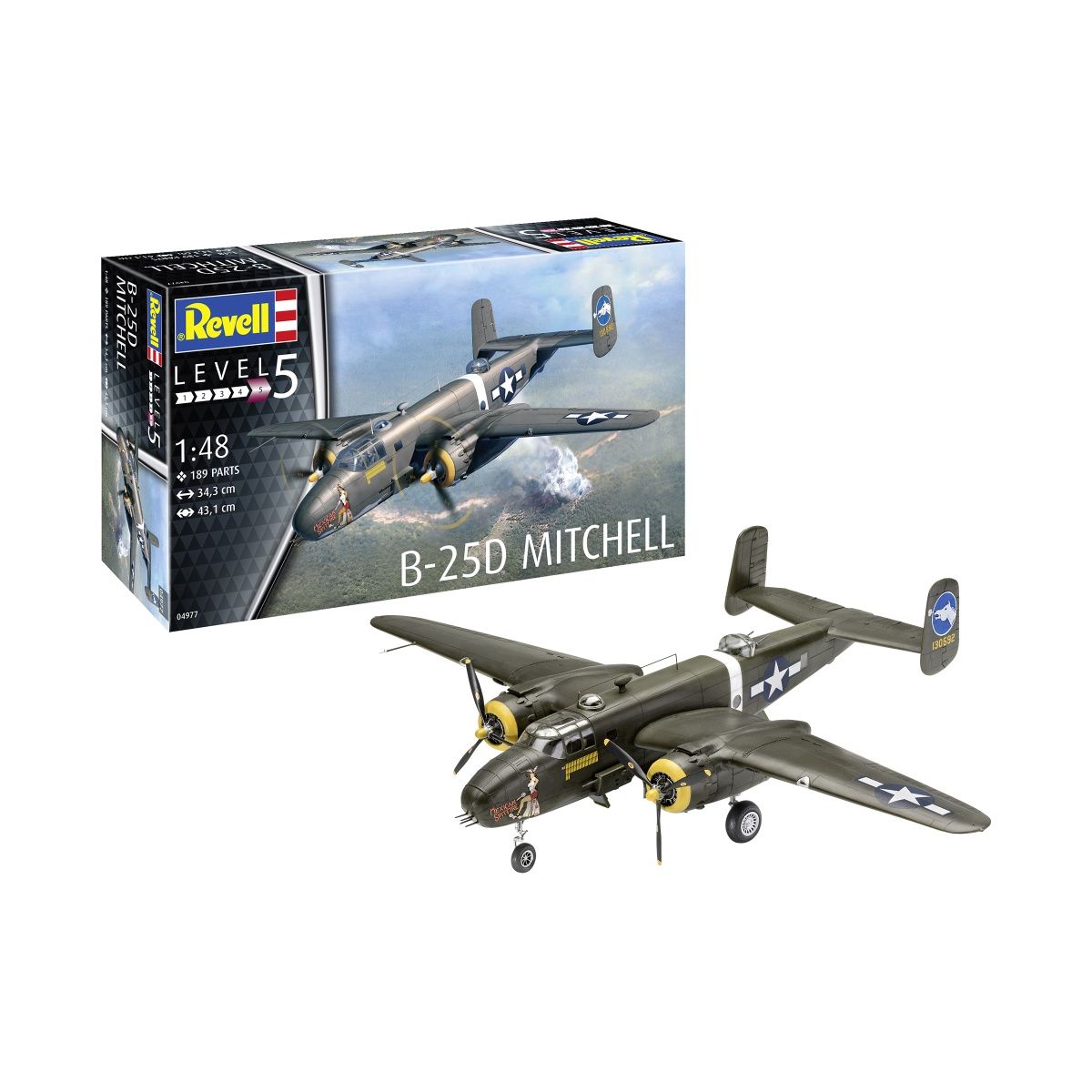 Modellbausatz zu der zweimotorigen B-25 Mitchell, die oft als bestes Flugzeug in der Klasse der mittelschweren Bomber bezeichnet wird. Die B-25 galt als robust, sehr zuverlässig und konnte trotz Ausfall eines Motors weiterfliegen. Zur Verteidigung verfügte sie unter anderem über ein Zwilllings-MG im elektrisch angetriebenen Rückenturm. - Detaillierter Innenraum - Beweglicher Rückenturm - Drehbare Rotoren Authentische Darstellung folgender Versionen: - North American B-25D Mitchell, 345 Bomb Group, USAAF, Nadzab, Papua New Guinea, April 1944 - North American B-25D Mitchell, 345 Bomb Group, USAAF, Nadzab, Papua New Guinea, June 1944.