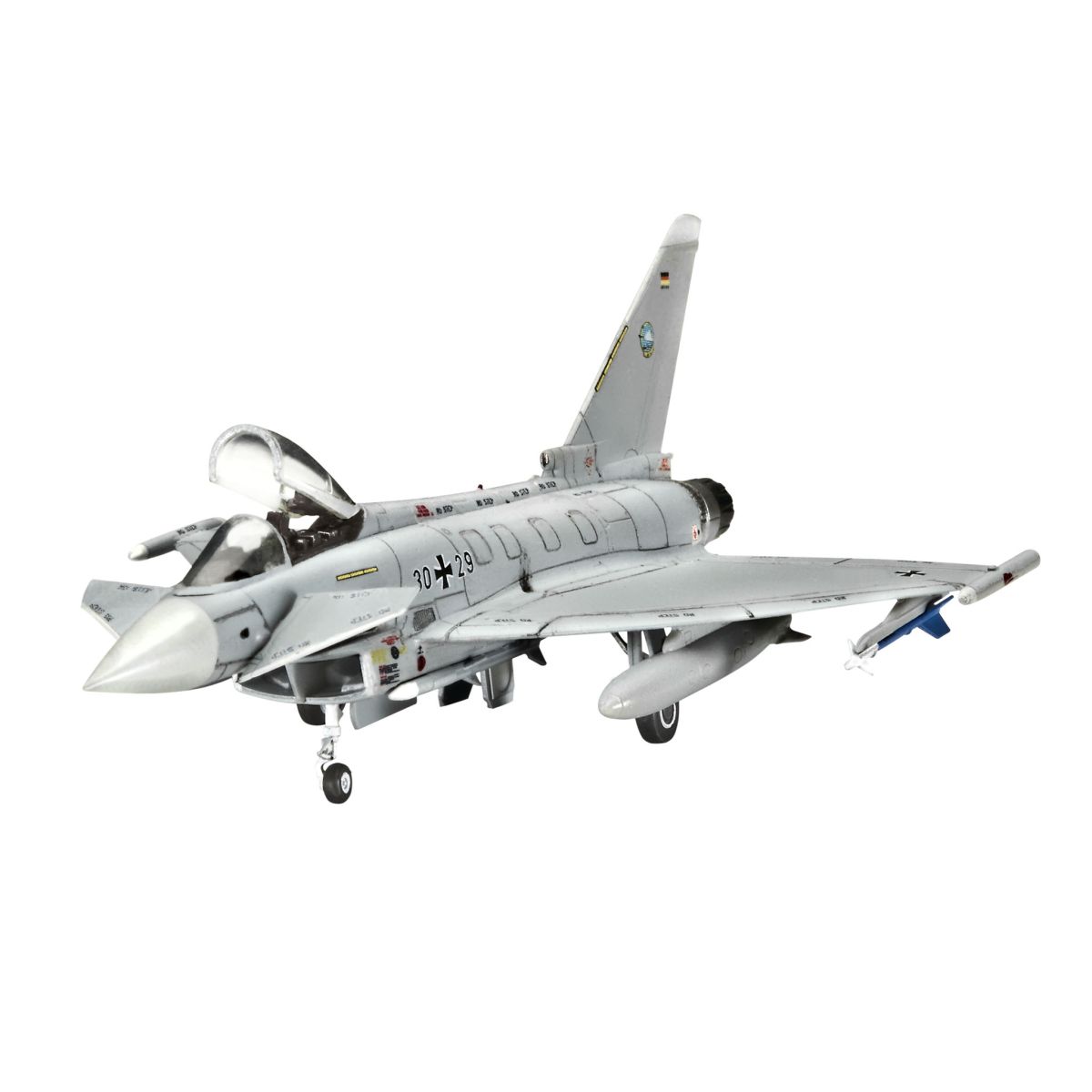 Der Eurofighter ist das derzeit überragende Hochleistungs-Mehrrollen-Kampfflugzeug der neuesten Generation. Mit einer Höchstgeschwindigkeit von Mach 2,0+ beherrscht der Eurofighter sowohl den Luftfern- und ?nahkampf als auch den Luft-Boden-Einsatz. Er ist in erster Linie als Jagdflugzeug zur Luftraumsicherung ausgelegt und hierfür mit einer Mischbewaffnung aus leistungsfähigen Luft-Luft- Lenkflugkörpern kurzer und mittlerer Reichweite ausgerüstet. - Fein strukturierte Oberflächen mit versenkten Blechstössen - Detailliertes Cockpit - Detailliertes Fahrwerk - Zwei Außentanks - 4 METEOR-Lenkwaffen - 4 AMRAAM-Lenkwaffen - 2 IRIS-T Lenkwaffen - 2 ASRAAM-Lenkwaffen - 2 ASRAAM-Lenkwaffen für die RAF-Version Super Abziehbild für die Versionen Deutsche Luftwaffe und RAF: - Eurofighter Typhoon of German Air Force Jagdgeschwader 74 Mölders, Neuburgm, 2009 - Eurofighter Typhoon F.2 of No. 11 Squadron Royal Air Force RAF Coningsby, Licolnshire 2009.