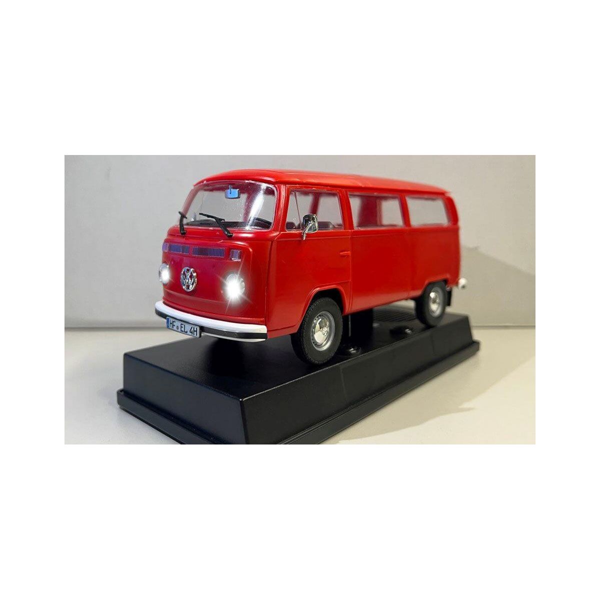 Der VW T2-Bus Technik Bausatz ist eine tolle Möglichkeit, den Spaß am Bauen und Spielen mit einem Modell zu erleben. Er ist ein Click-System Level 2-Bausatz, d.h. er ist für alle Modellbauer ab 10 Jahren geeignet. Der Bausatz enthält 109 Teile, Kleben oder Lackieren ist nicht erforderlich. Der echte VW-Motor-Sound und das Licht sorgen für ein spannendes Spielerlebnis. • Click-System Bausatz kein Bemalen, kein Bekleben • Front- und Rücklichter • Original VW T2 Motorensound • Plug Play – Modell einfach aufstecken und es erwacht per Knopfdruck zum leben • Drehbare Räder • Orginalgetreues Interior • Sticker zur Dekoration - Batteriebox (2x 1,5 V AA- Batterien, nicht enthalten) Durch das innovative Click System ist bei diesem Modell schneller Erfolg garantiert: Mehrfarbige, präzise gefertigte Bauteile werden durch einfaches Zusammenstecken stabil verbunden und mit Stickern dekoriert. Einfache Bausätze bieten eine zugängliche Möglichkeit, junge Menschen für den Modellbau zu begeistern und ihre kreativen Fähigkeiten zu fördern..