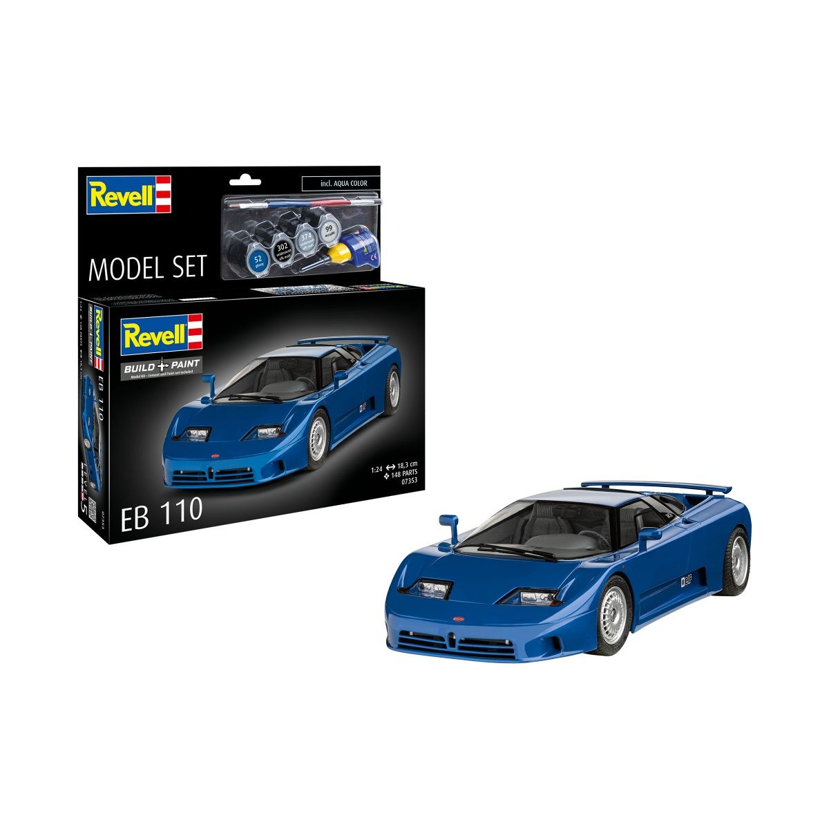 Der 1991 zum 110. Geburtstag von Ettore Bugatti vorgestellte EB110 wurde bis 1995 produziert. Mit 340 km/h Höchstgeschwindigkeit war er der schnellste straßentaugliche Sportwagen seiner Zeit. - Mehrteiliger 12-Zylinder-Motor - Detaillierte Karosserie - Abziehbilder mit diversen Kennzeichen (D, A, F, B, NL, GB, I, CH) Neben Basisfarben sind auch Kleber und Pinsel enthalten..