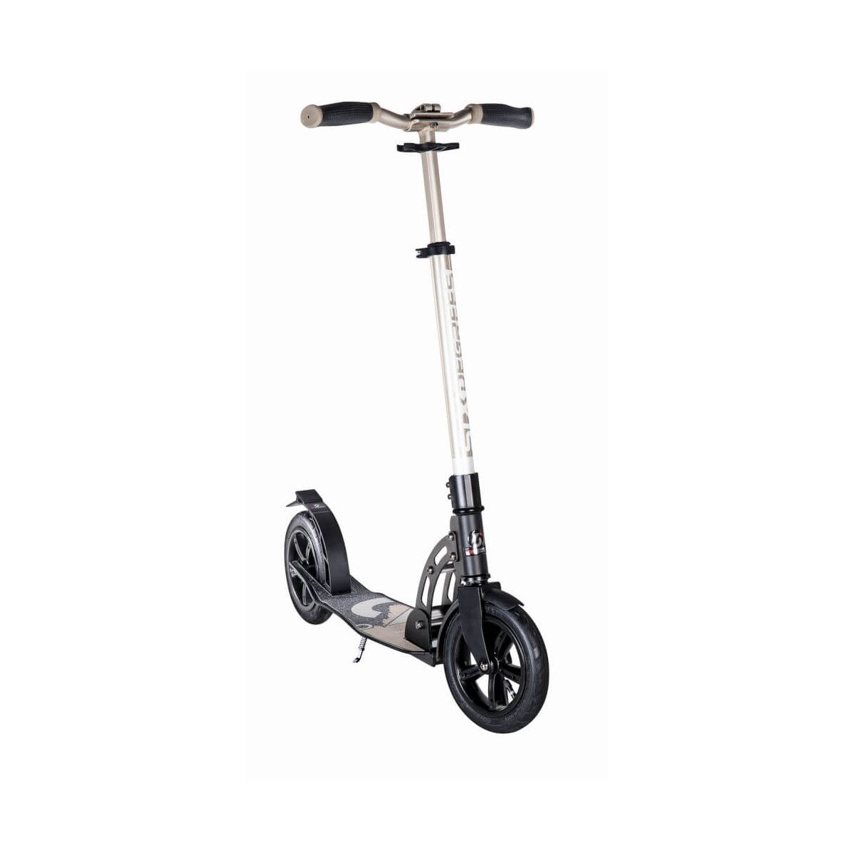 Innovation und Qualität: Wir legen großen Wert auf Verarbeitungsqualität und Gebrauchstauglichkeit unserer Scooter. Egal ob ins Büro, in den Park oder in die Schule – mit dem Six Degrees Scooter sind Sie stets sicher und komfortabel unterwegs. Das stylische Design und die brillanten Farben machen den Scooter zu einem optischen Highlight. - Fahrkomfort: Die großen 205 mm High Rebound-Rollen, Härte 82A, sind aus gegossenem PU und auf stylische zweifarbige Felgen montiert. Die ABEC7 Kugellager sorgen für ein angenehmes Fahrgefühl. Hochwertiges Aluminium, langlebige, ergonomische TPR-Griffe und eine verstärkte Lenkerschelle machen den Scooter zu einem robusten Wegbegleiter. Mit dem Schutzblech an Vorder- und Hinterrad sind Sie vor Schmutz und Nässe gut geschützt. - Easy fold-Klappmechanismus: Durch den innovativen Easy Fold-Klappmechanismus mit Sicherheitsarretierung können Sie den Roller superschnell zusammenklappen, mitnehmen oder verstauen. Der praktische Seitenständer ist mit einem Handgriff ausgeklappt und der Scooter jederzeit sicher abgestellt. - Sicherheit: Die verstärkte Bremse sorgt auch bei rasanten Fahrten für ein sicheres Anhalten. Durch die Reflektoren vorne und hinten ist man auch bei schlechten Sichtverhältnissen im Straßenverkehr stets gut sichtbar. Zusätzlichen Fahrkomfort bieten der extra breite BMX-Style Lenker mit der Anti-Vibrationsklemme und das abgerundete Trittbrett. Für Groß Klein: Die Lenkstange ist farbig eloxiert, zwischen 77-102 cm 5-fach höhenverstellbar und lässt sich mittels des Schnellspanners ganz leicht anpassen. Das extra tiefe XL-Deck mit einer Größe von 58 x 15 cm und umlaufender Randverstärkung bietet viel Platz für kleine und große Füße. Das maximale Benutzergewicht beträgt 100 kg. Wir bieten Ihnen einen umfassenden After-Sales-Service an sowie eine große Auswahl an Ersatzteilen unter www.authentic-sports.de..