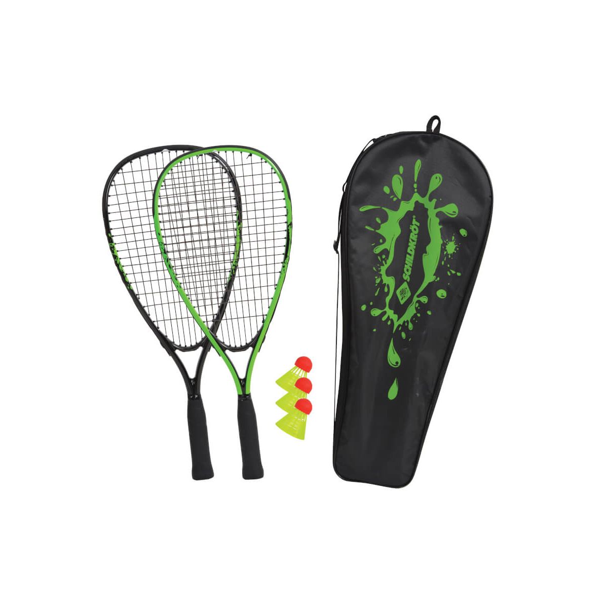 Speed-Badminton pur: Das neue Speed-Badminton Set von Schildkröt kommt inklusive 3er Dose Bälle und in einer praktischen Tasche mit Tragegurt. Die sehr handlichen Schläger (Länge 54,5cm, Gewicht 165g, Rahmenprofil 17,3mm) sind 4cm kürzer als das normale Speed-Badminton Racket und dadurch deutlich handlicher, Anfänger, Freizeit-Spieler aber auch Kinder haben mit diesem Set wesentlich mehr Freude und ein schnelleres Erfolgserlebnis! Speed-Badminton (oft auch als Crossminton bezeichnet) ist das wohl vielseitigste Rückschlagspiel der Welt! Gespielt wird am Strand, im Park oder Garten - ganz ohne Netz. Das Besondere an Speed-Badminton ist die Windstabilität - wer kennt nicht die frustrierenden Versuche, bei leichtem Wind Federball zu Spielen? Der windstabile Speed-Badminton Ball ist schwerer und kleiner als ein normaler Federball und bringt dabei ein Extra an Speed. Über Schildkröt: Die über 100 Jahre alte deutsche Marke Schildkröt gilt als Erfinder des Tischtennisballs. Heute bietet Schildkröt neben Tischtennis auch eine sehr umfangreiche Funsport-, Rollsport- und Fitness-Kollektion an und gilt in gewissen Bereichen als Marktführer. Die Produktentwicklung erfolgt ausnahmslos in Deutschland. Die weltweiten Produktionsstätten werden streng überwacht und genügen höchsten Sozialstandards..